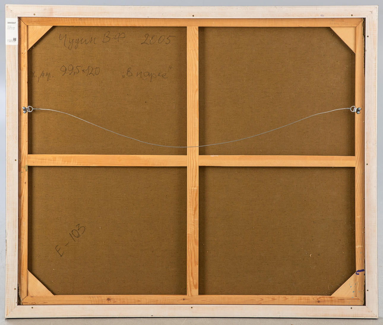 Viktor Chudin (1936-2016), in the park, acrylic on canvas, 2005, signed on the back, dated and in Russian titled 'V Parke', ca. 97 x 116 cm, with frame approx. 106 x 125 cm