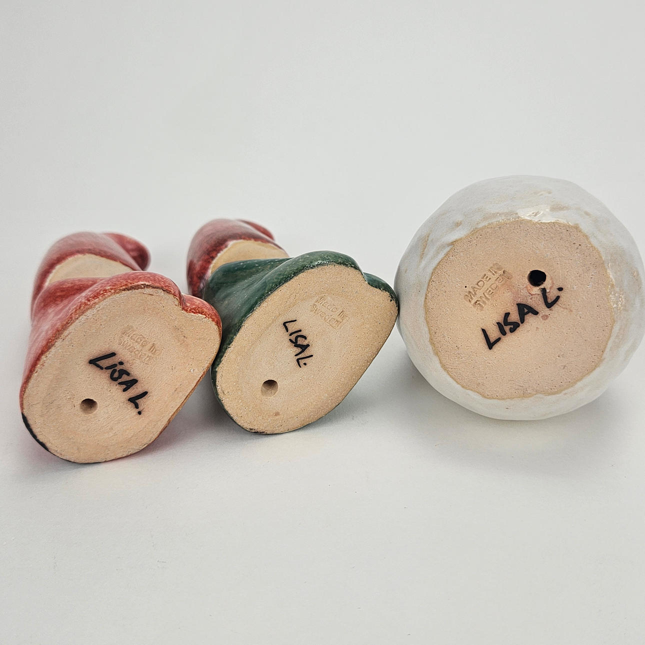 LISA LARSON. Three ceramic figurines, Santa tennis, signed.