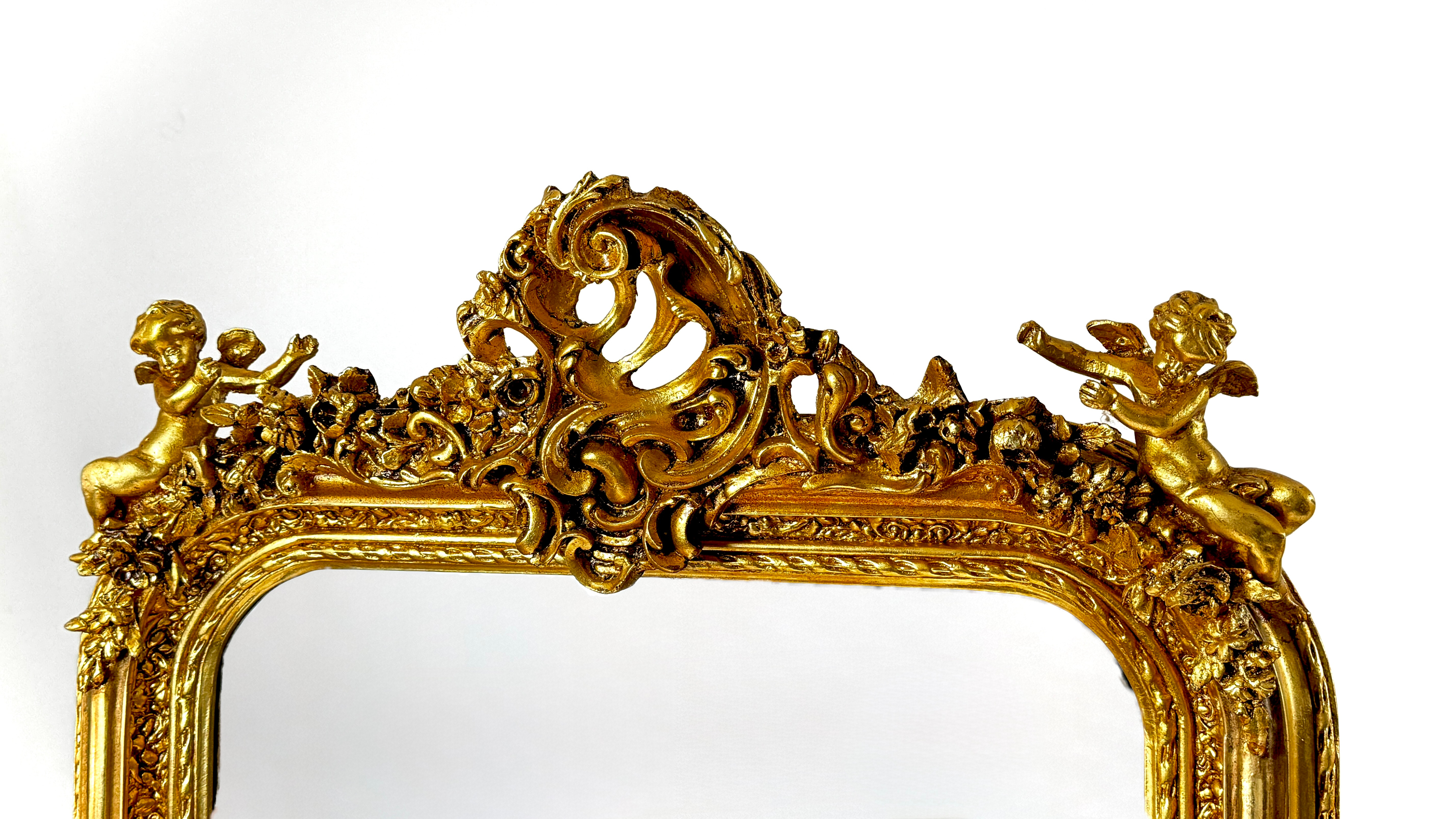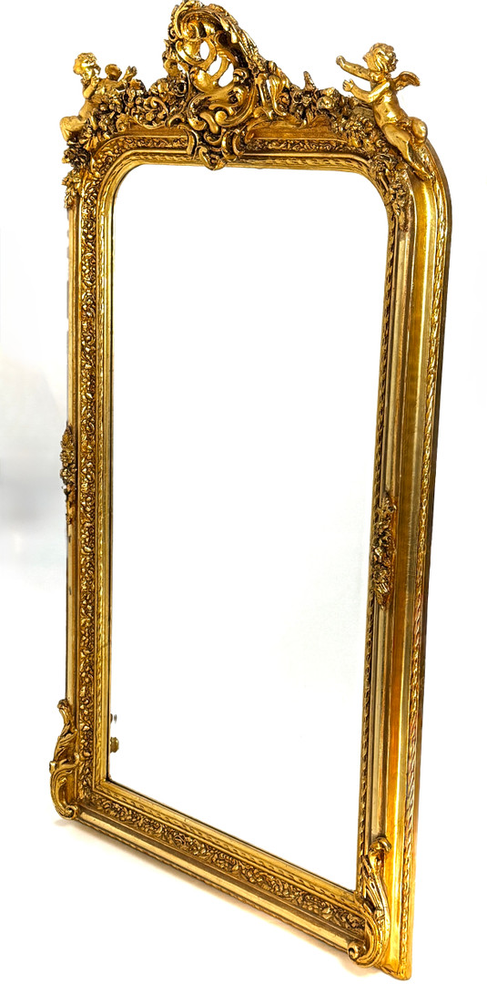3873127. LARGE GILT FRAMED BEVELLED EDGE MIRROR.