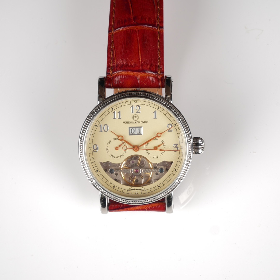 3877840. MEN'S WRISTWATCH, PWC, with glass bottom, automatic.