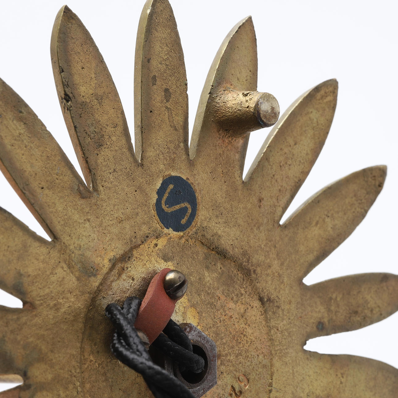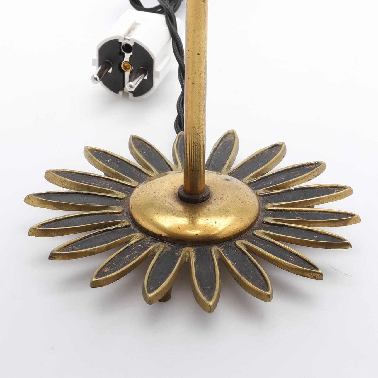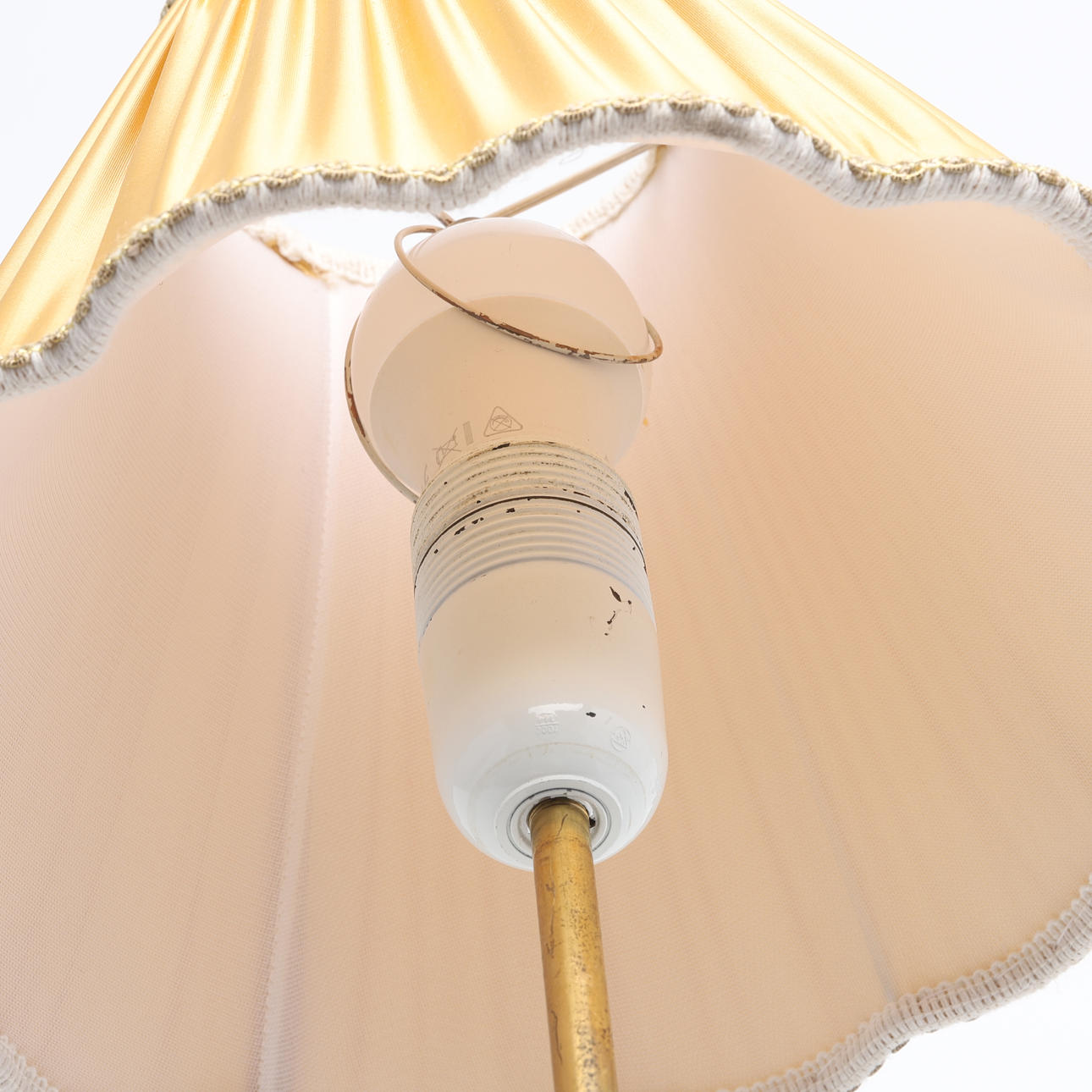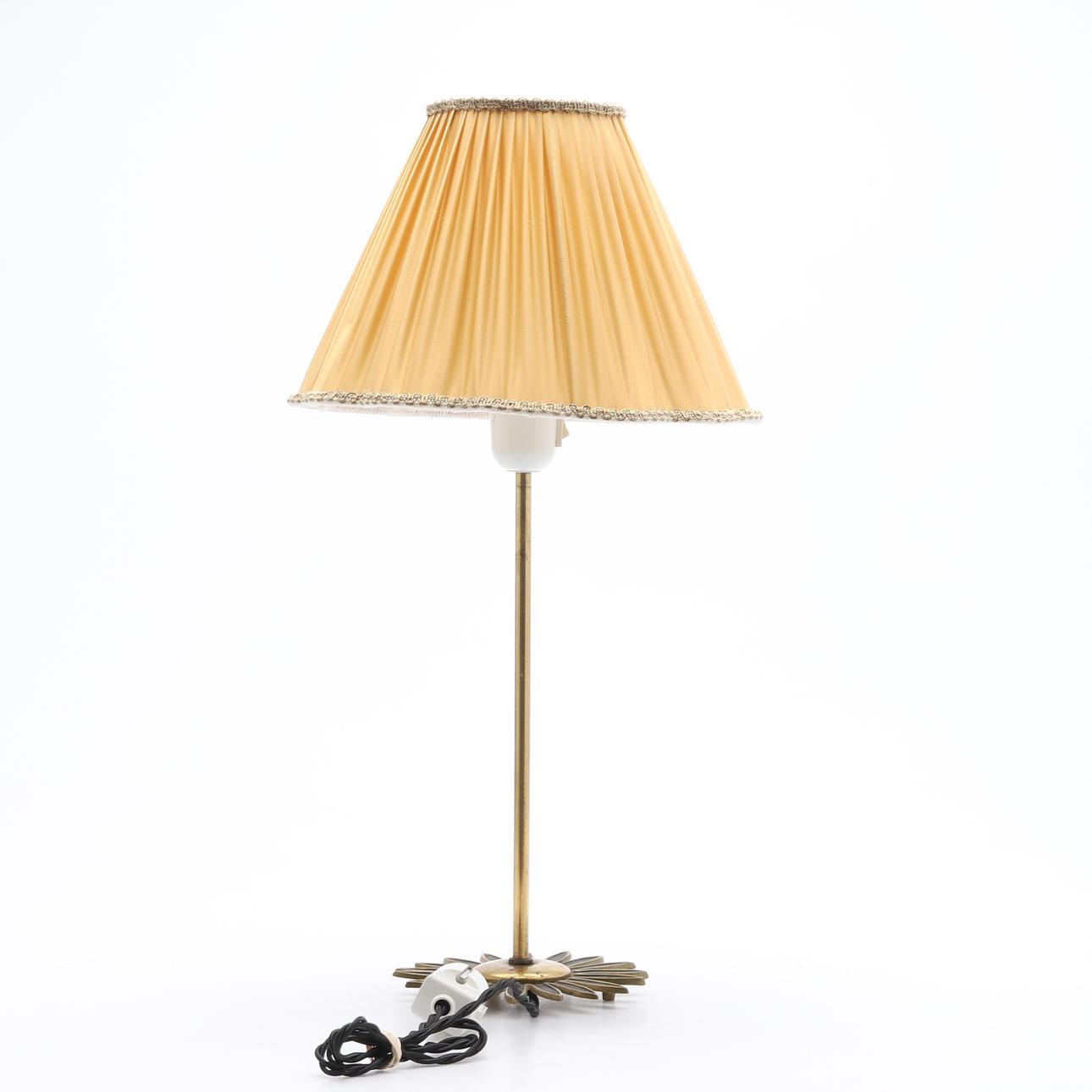 Brass foot. Stamped YMI 626/ 1. Textile screen. Height 38 cm.