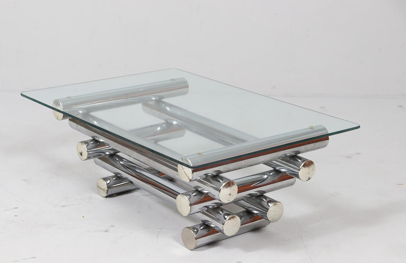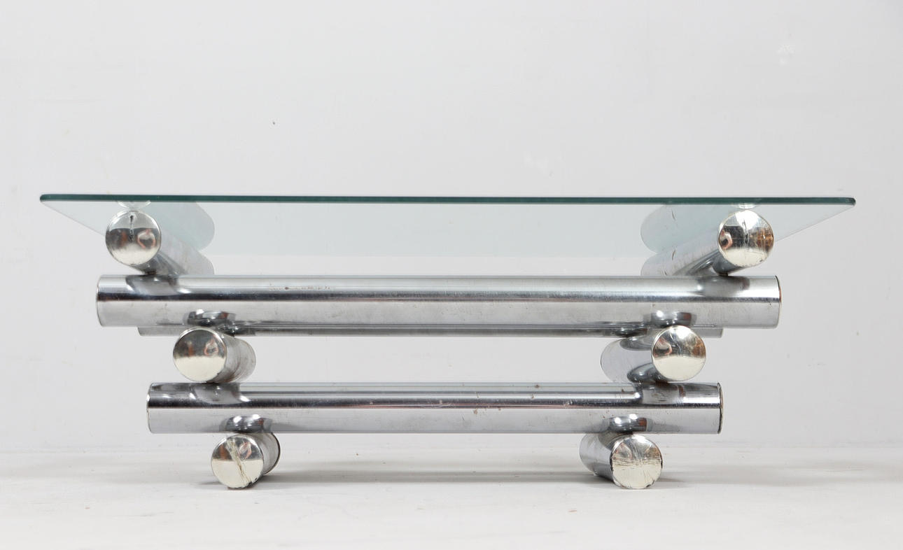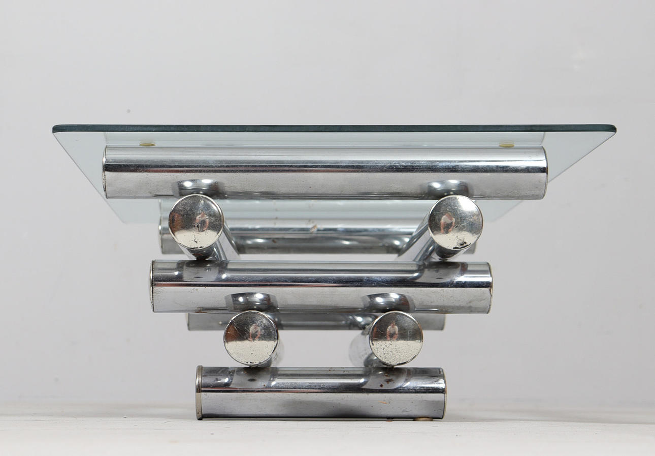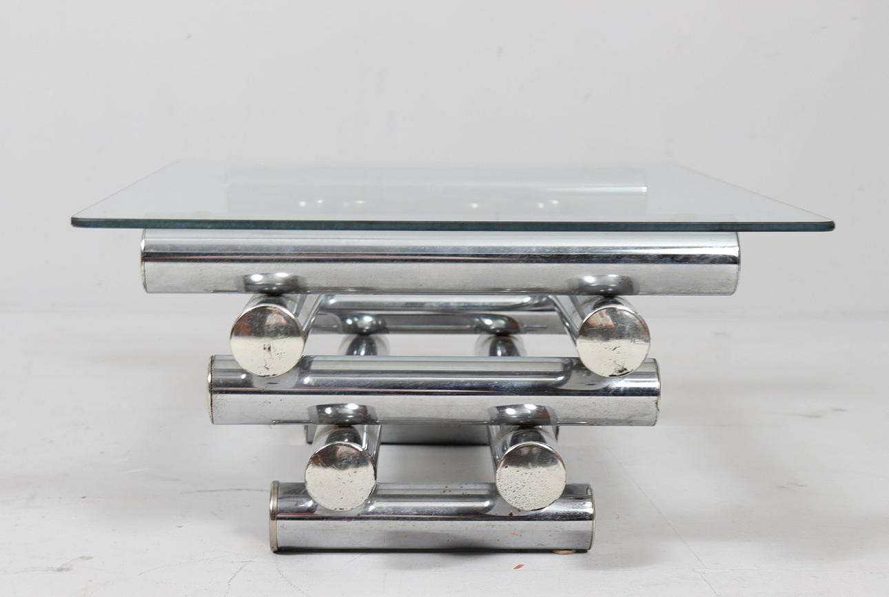 Coffee table/coffee table by Paul Mayen, 1970s, chrome-plated metal construction, with a glass top (loose),