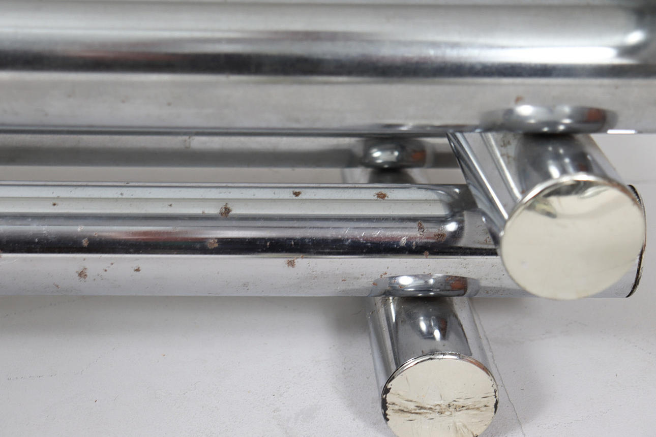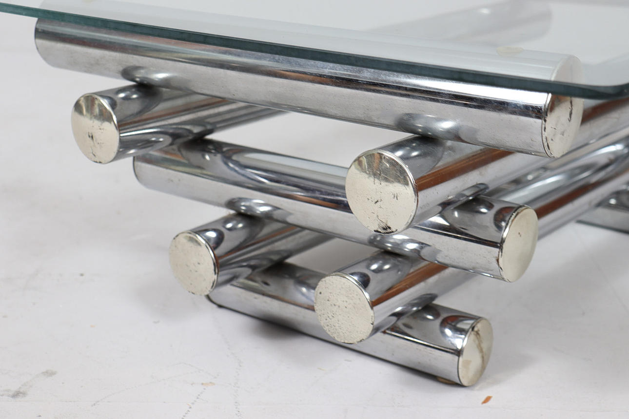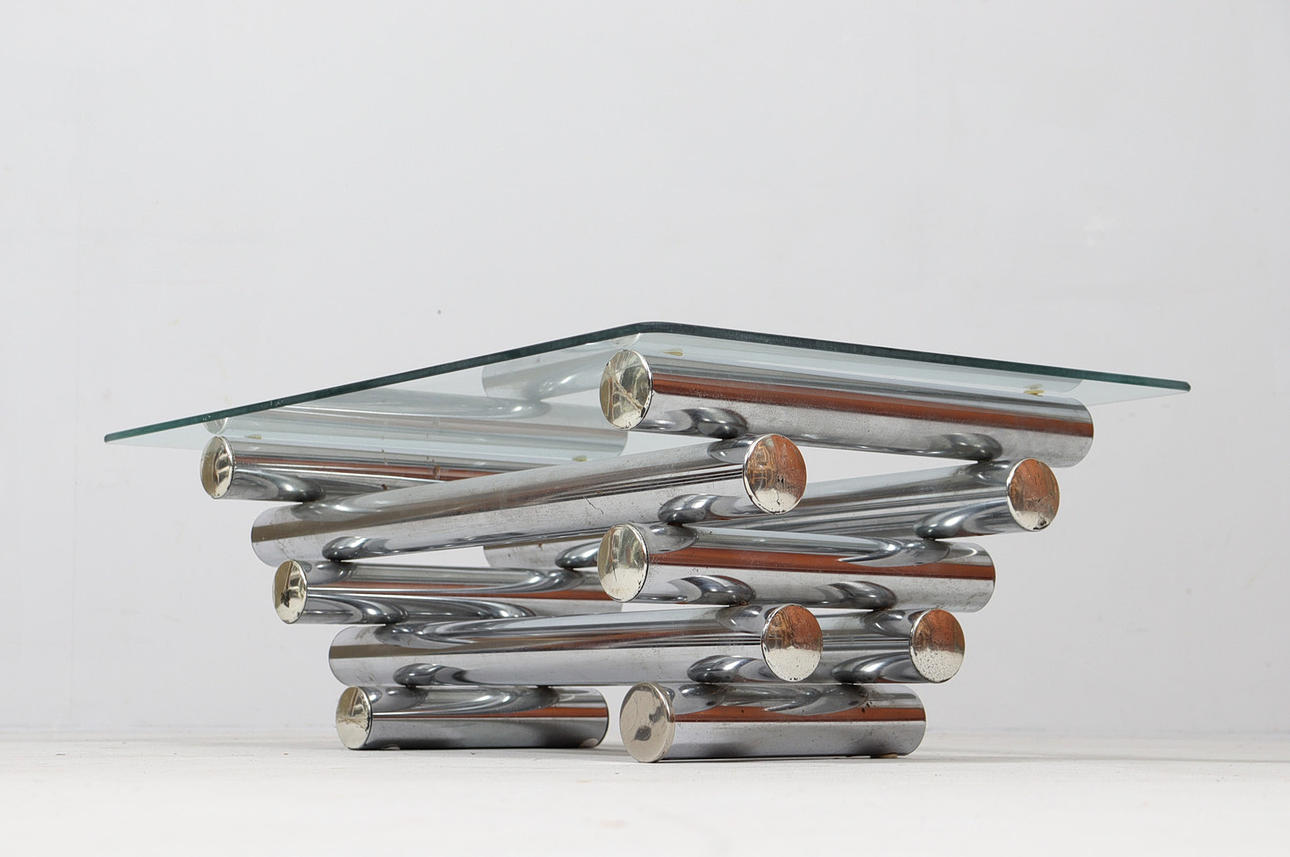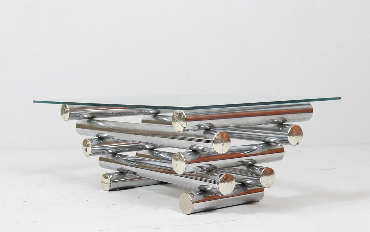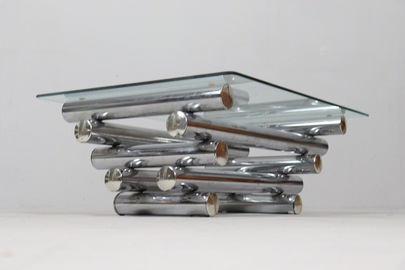 Coffee table/coffee table by Paul Mayen, 1970s, chrome-plated metal construction, with a glass top (loose),