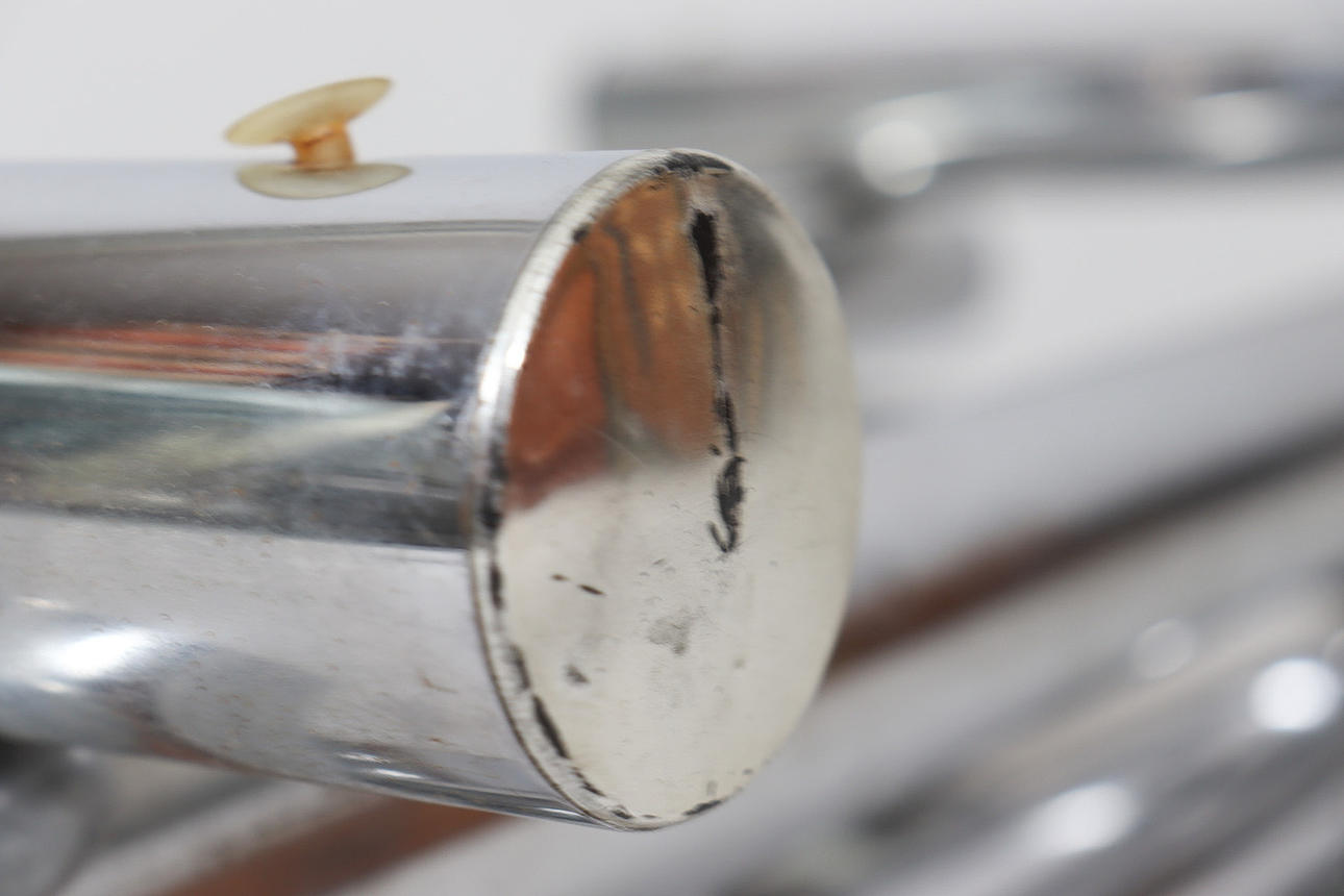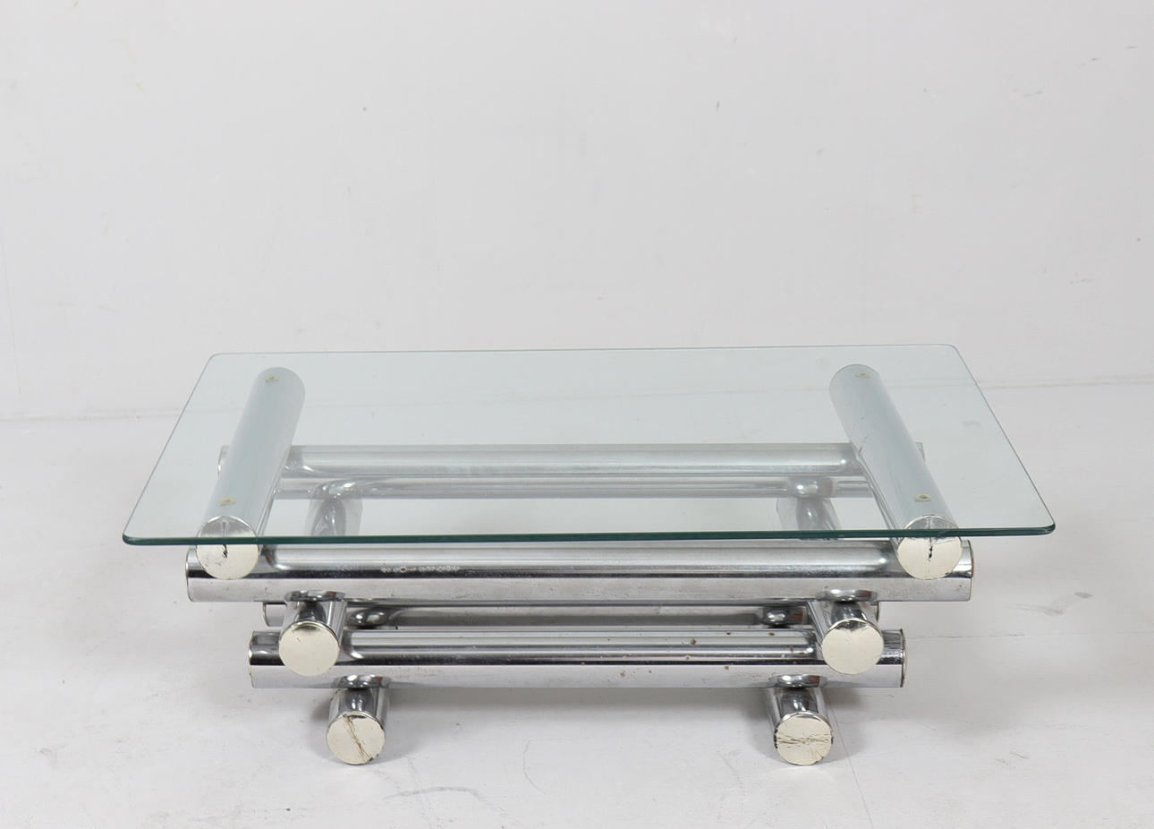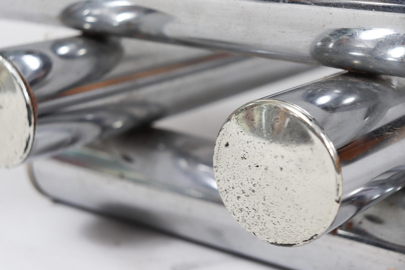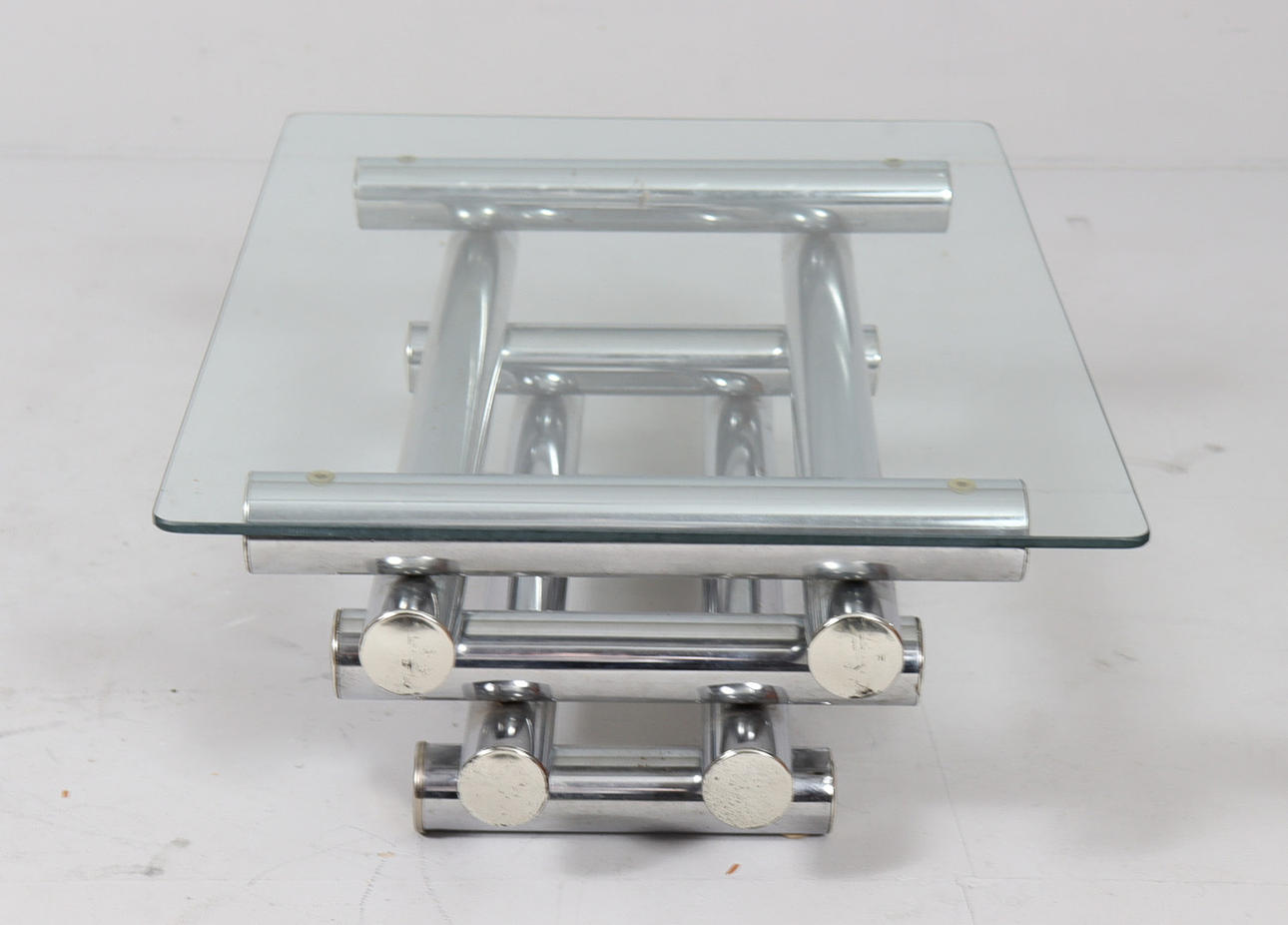 Coffee table/coffee table by Paul Mayen, 1970s, chrome-plated metal construction, with a glass top (loose),
