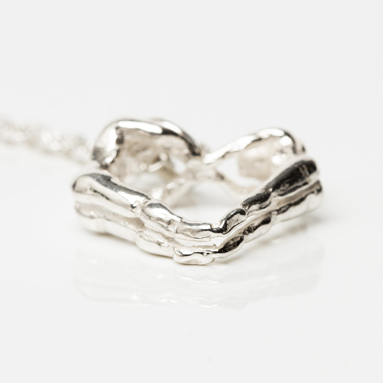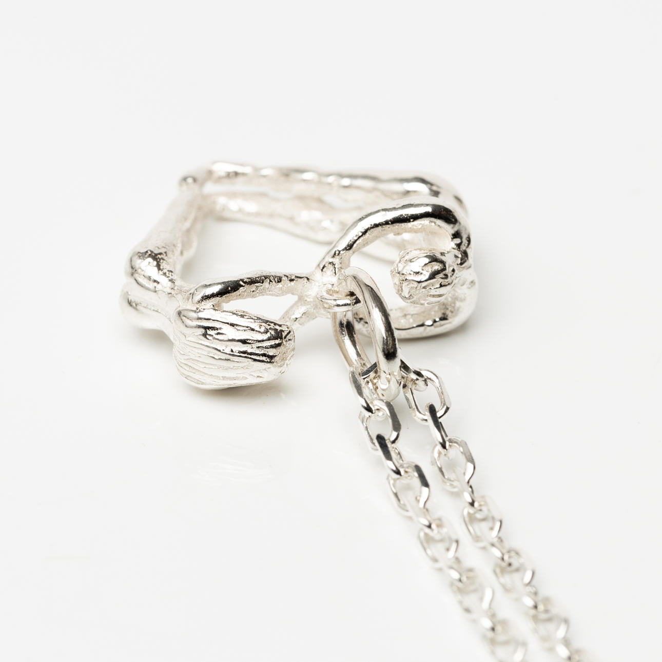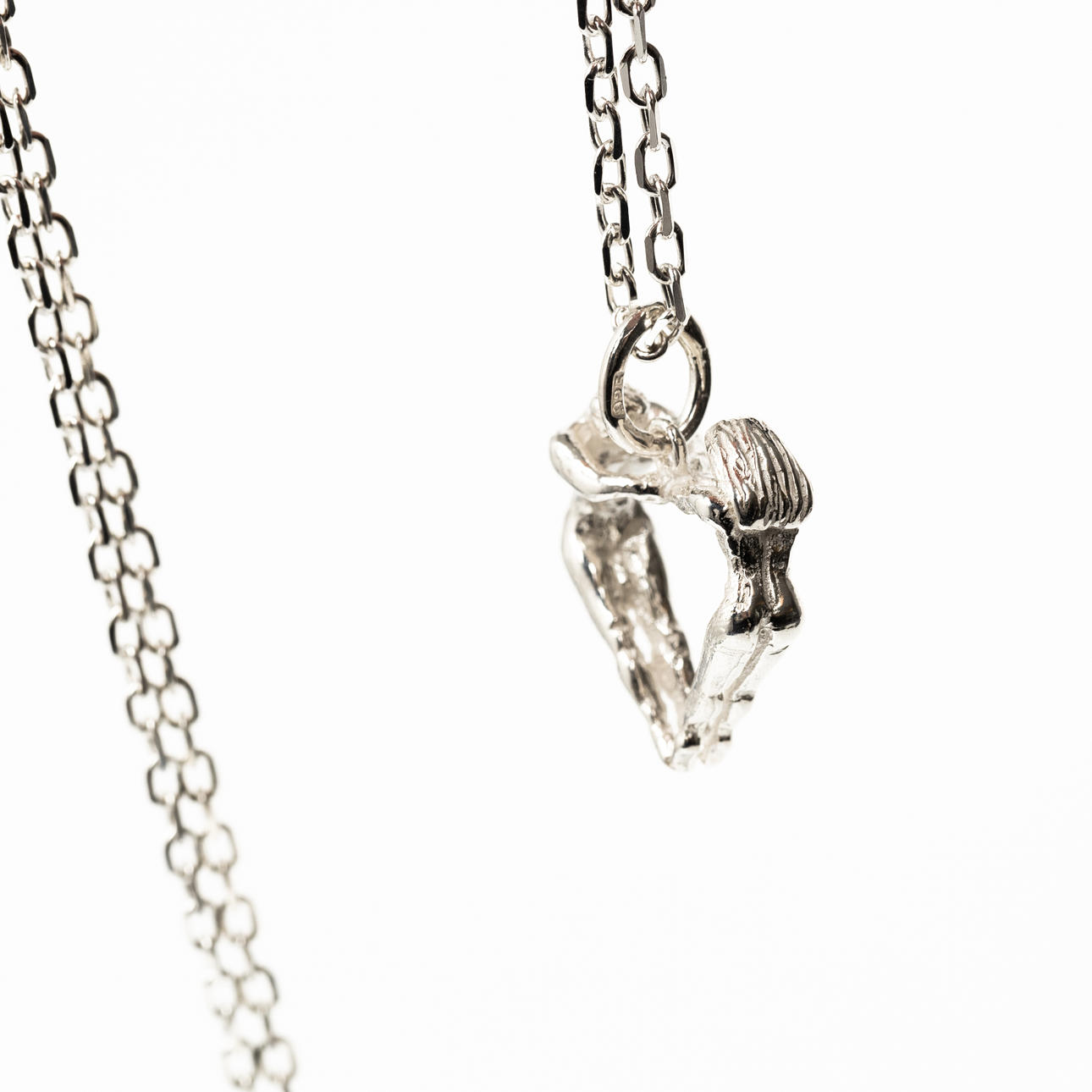 Chain length approx. 79 cm. Heart-shaped pendant, two human bodies shape the pendant, length approx. 30 mm. In ash.