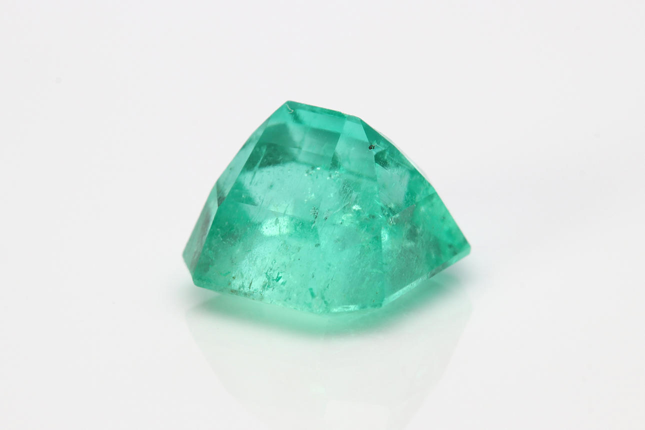 A faceted natural emerald approx. 9.3 x 8.9 x 7.0 mm, approx. 3.7 carat with clear green color.