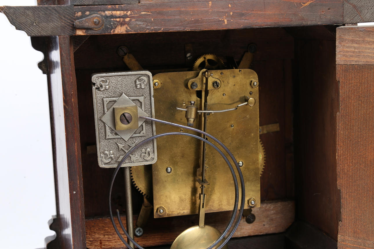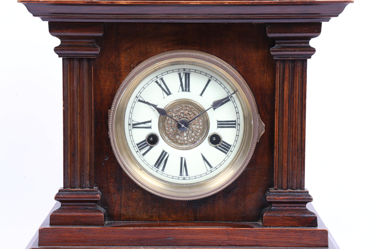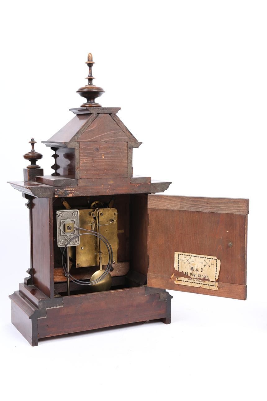 3884767. A GERMAN HAC 14 DAY STRIKE WALNUT MANTEL CLOCK.
