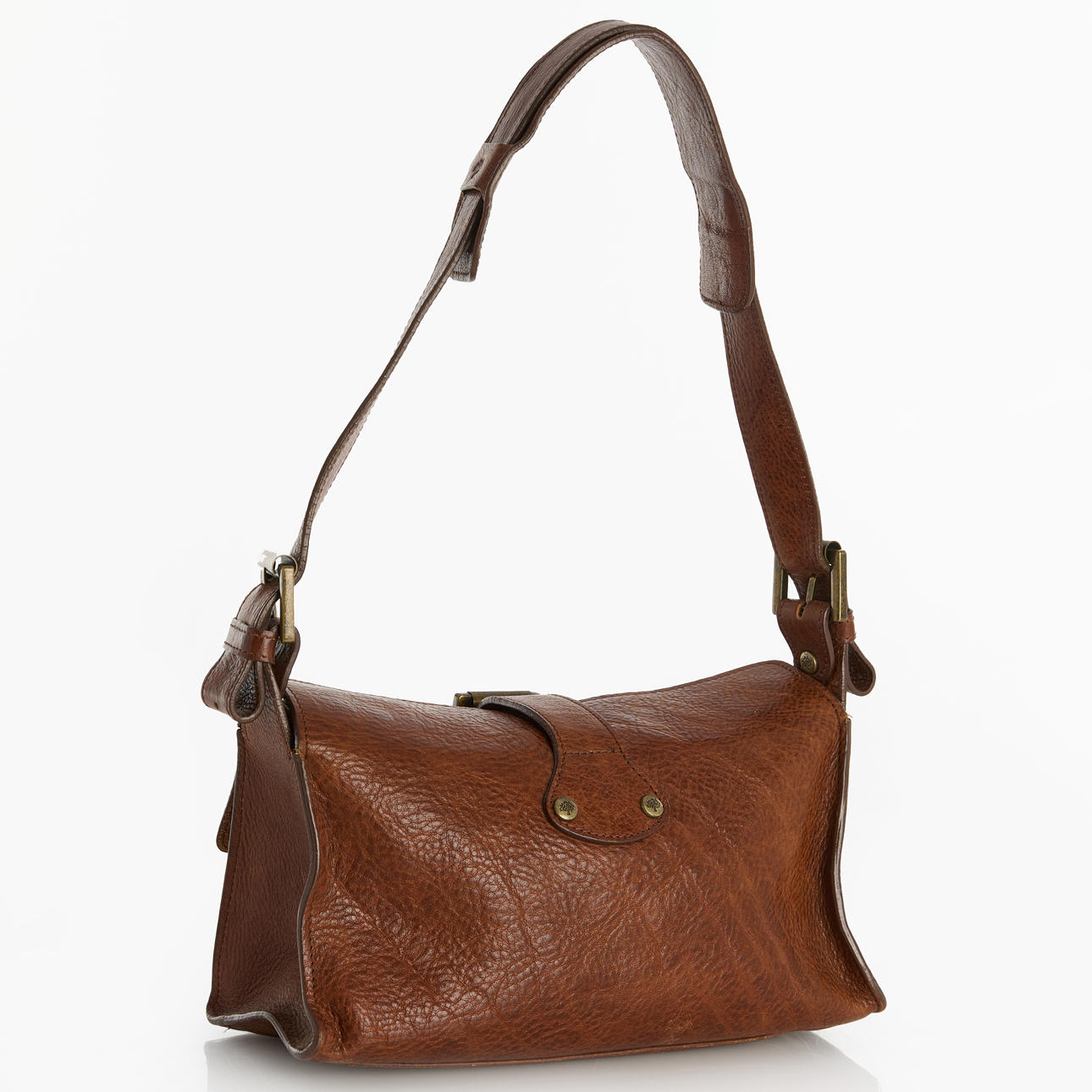 Closure with buckle, two compartments at the front with magnetic closure. Brass metal parts, buttons adorned with the Mulberry tree.