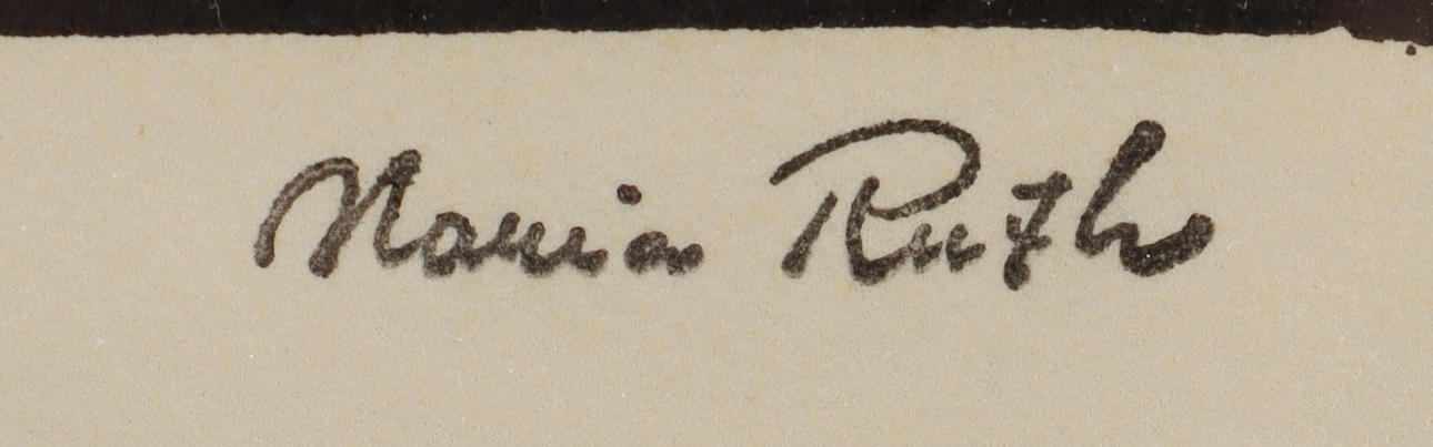 3886128. MARIA RUTH linoleum cut 90/150, signed.