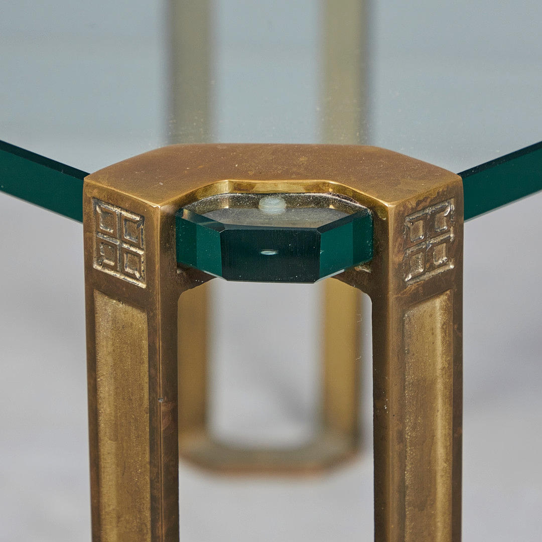 3888041. PETER GHYCZY. side table/coffee table, brass, glass, 1970s, Germany.