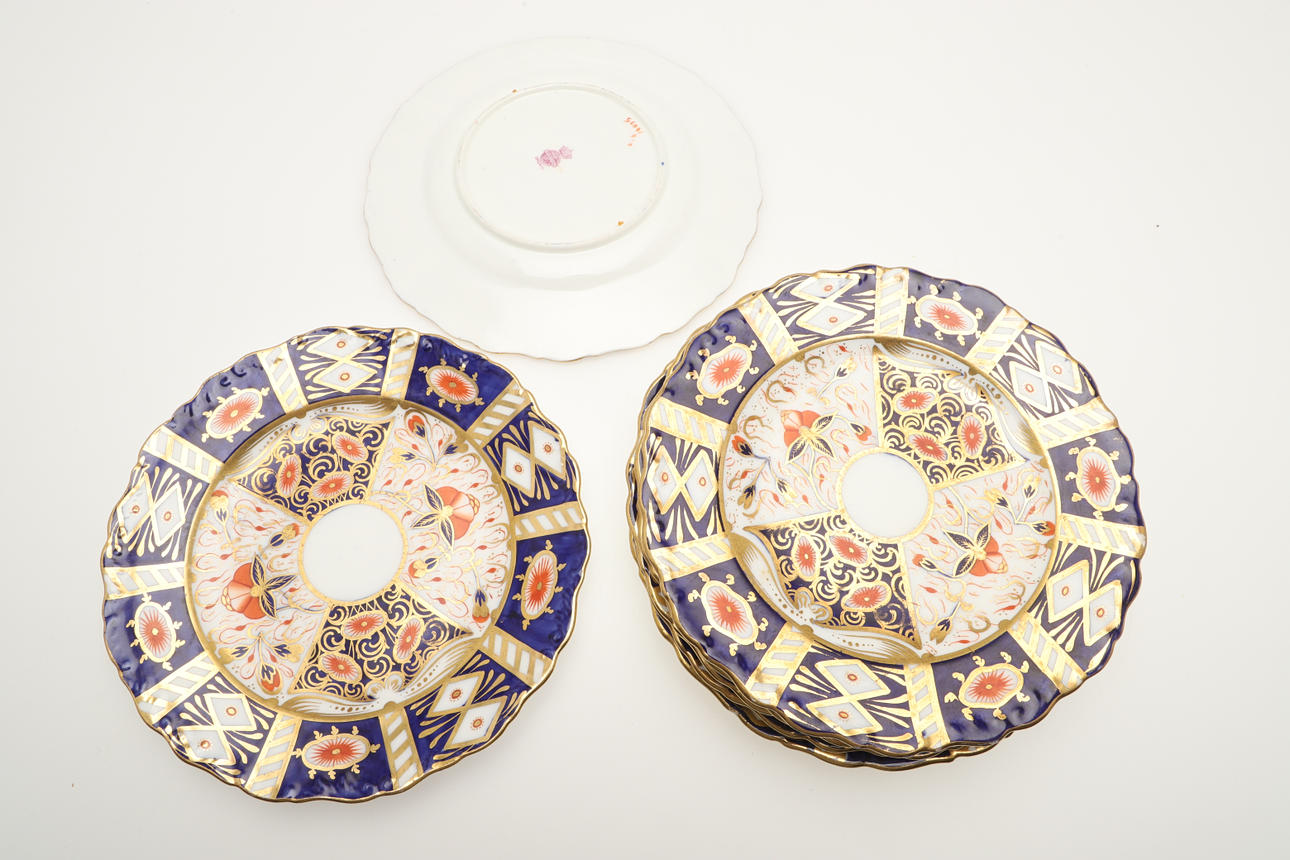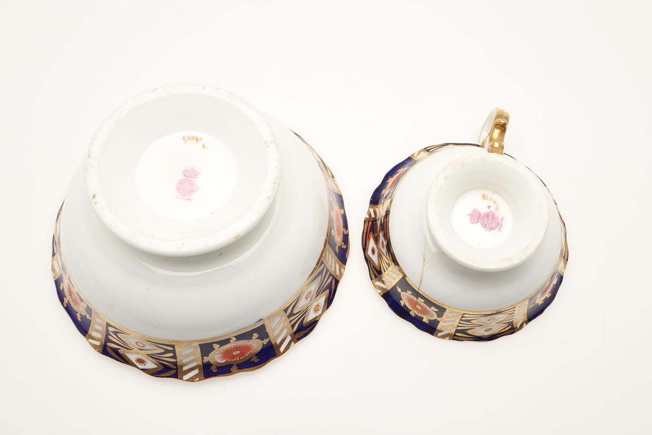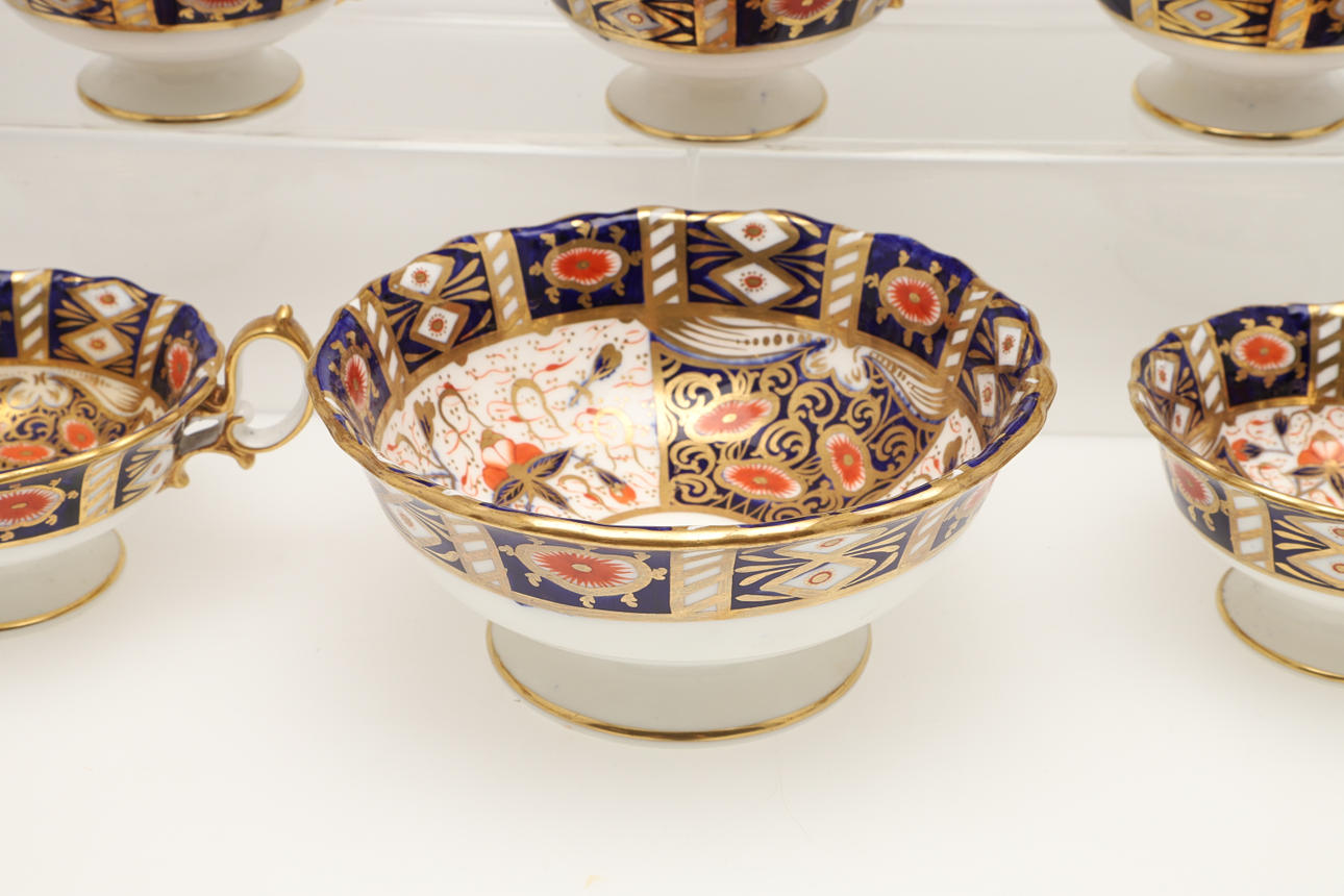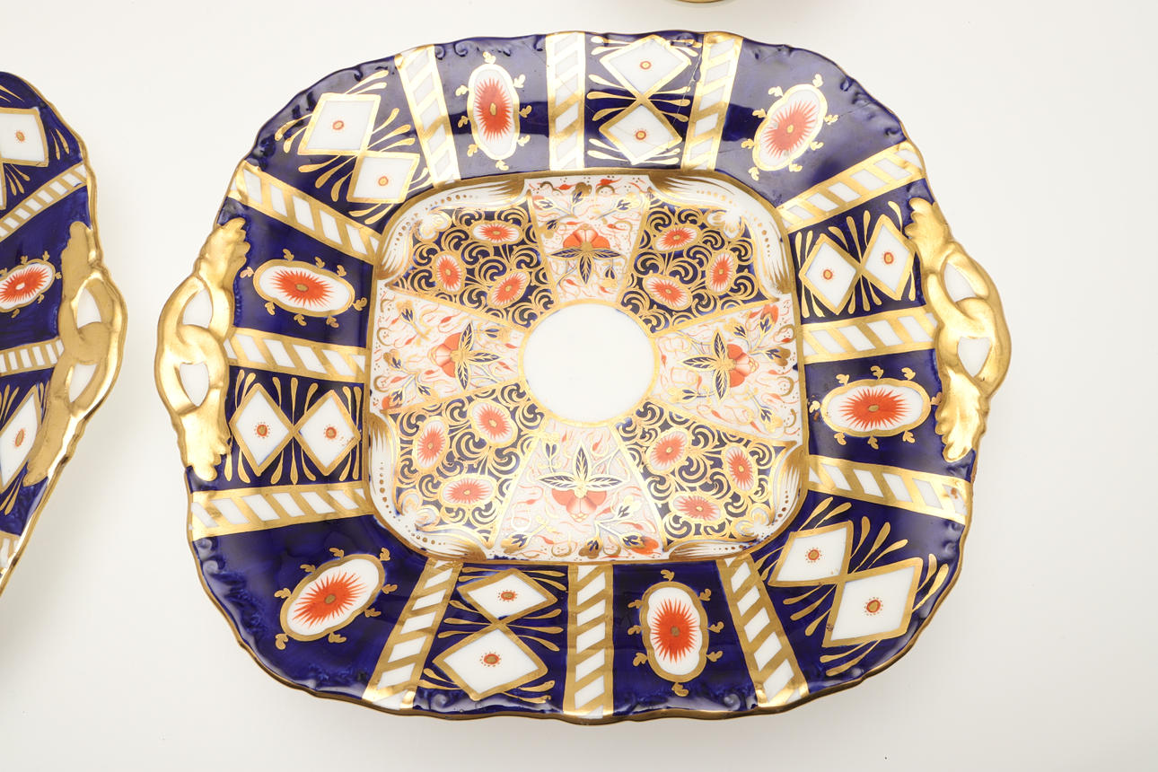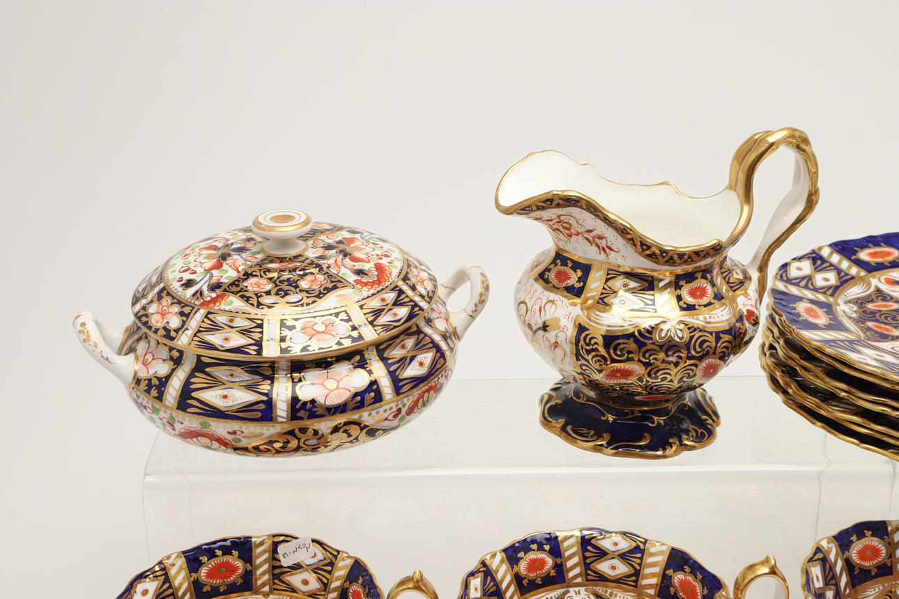 An Imari part service, comprising 12 cups, 10 saucers, 7 side plates, sugar bowl, two side plates and a sugar bowl. Also with an unmarked lidded sugar bowl in an Imari pattern, various damages and repairs.