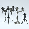 CANDLESTICKS, WROUGHT IRON, THREE PIECES.
