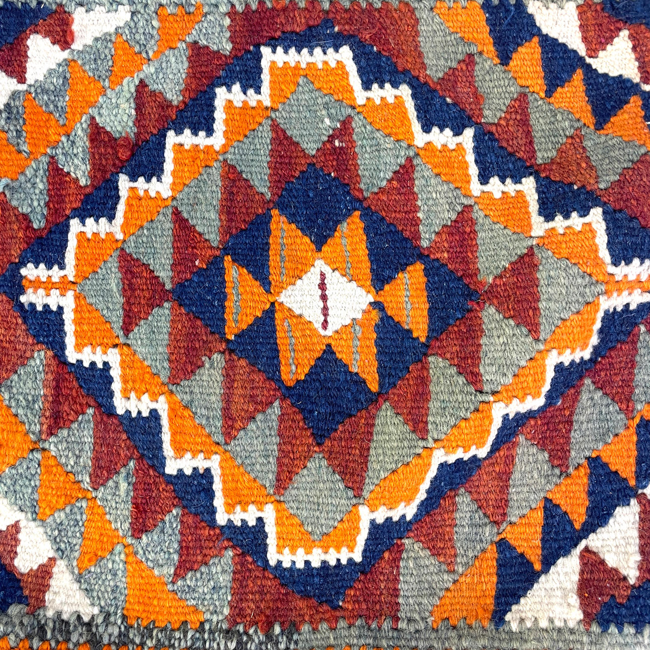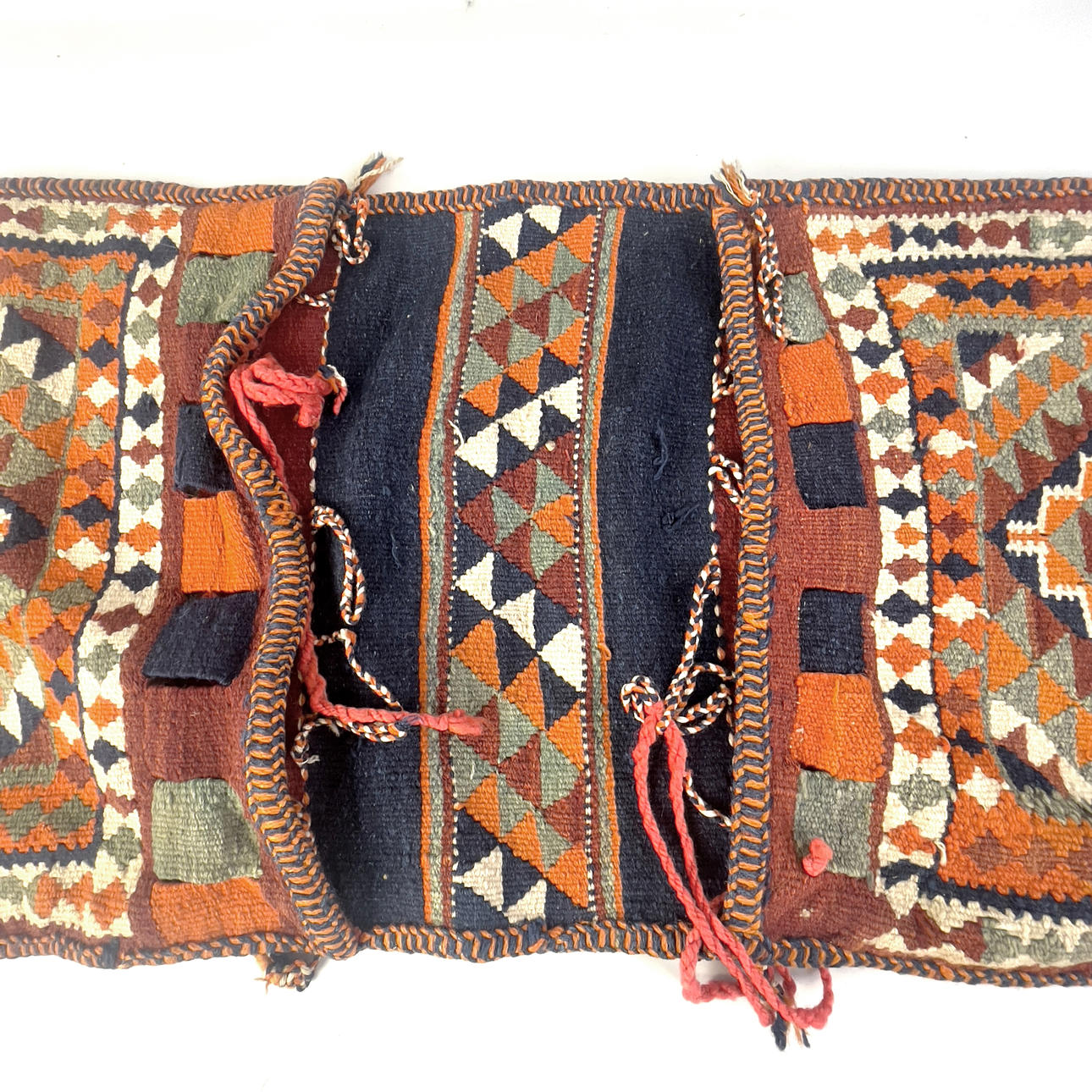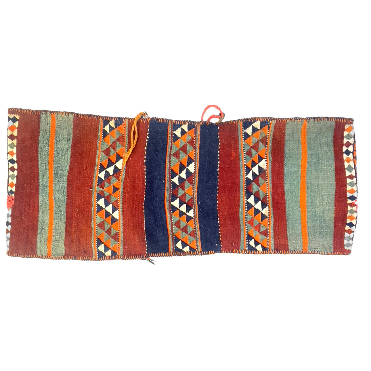 With two pockets. Polychrome, geometric pattern. Dimensions approx. 135 x 52 cm.