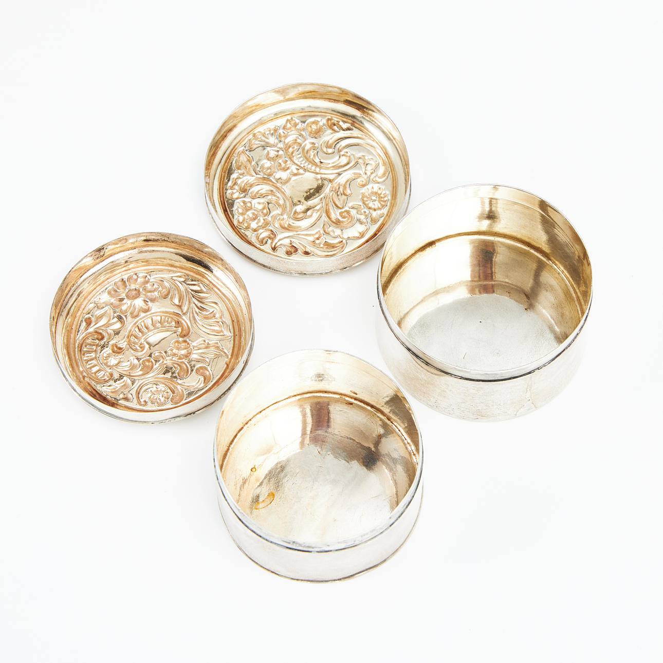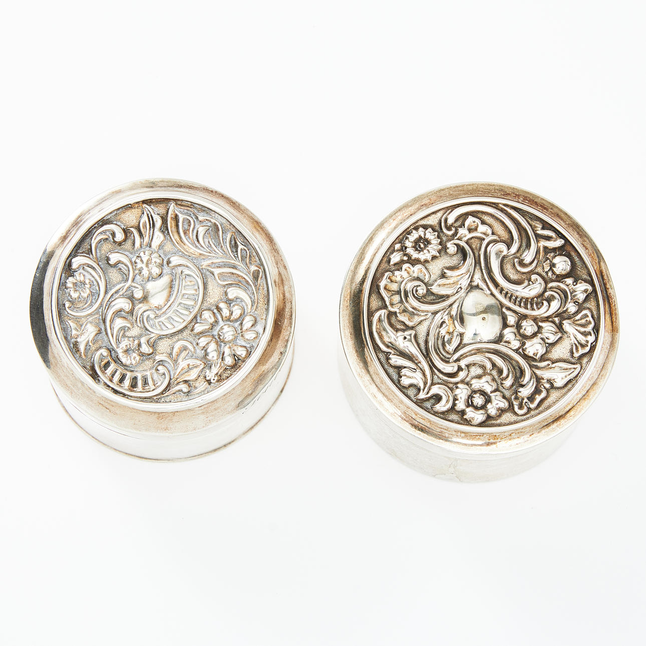 Two silver boxes, Carl Julius Åkerman (active 1841-1870) and Gustaf Folcker (active 1807-1865) dated 1849 and 1847, Sweden.