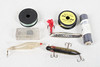 Fishing reel, fishing lug, etc. Bag, width approx. 27 cm, height approx. 21 cm.