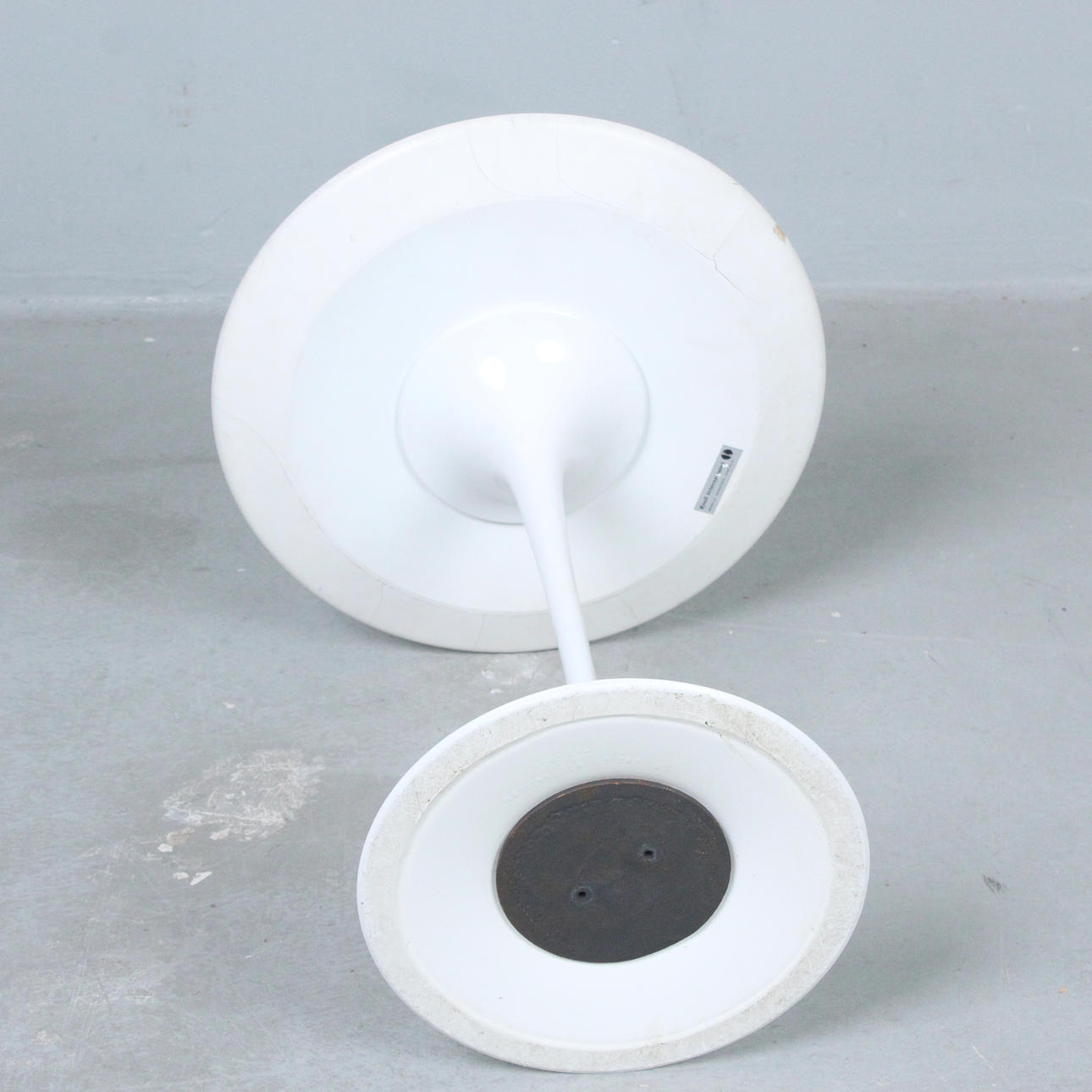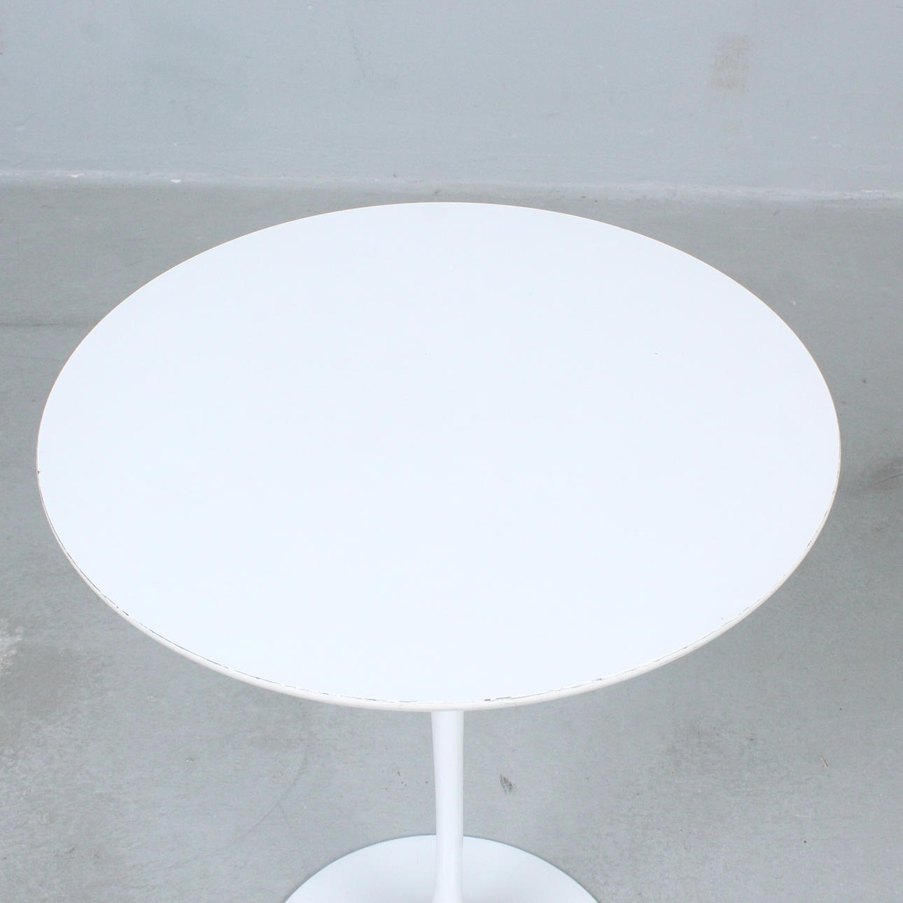 Eero Saarinen (1910—1961) for Knoll International, coffee table/side table 'Tulip', cast aluminum base, white laminated round table top, inscribed below,