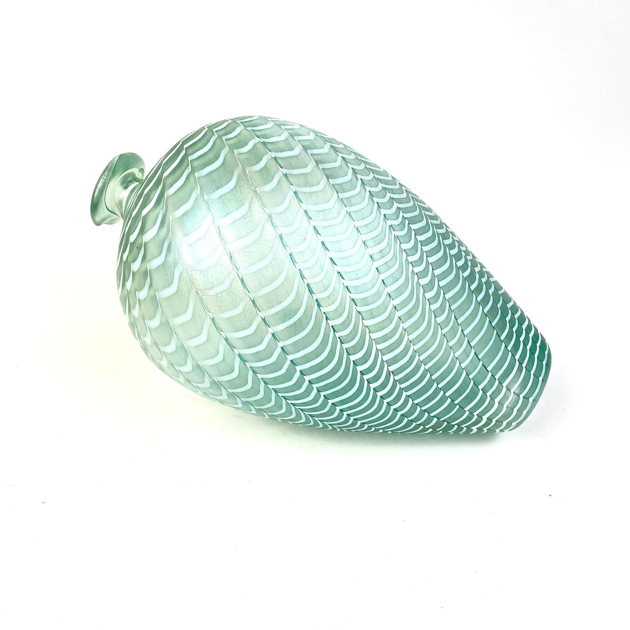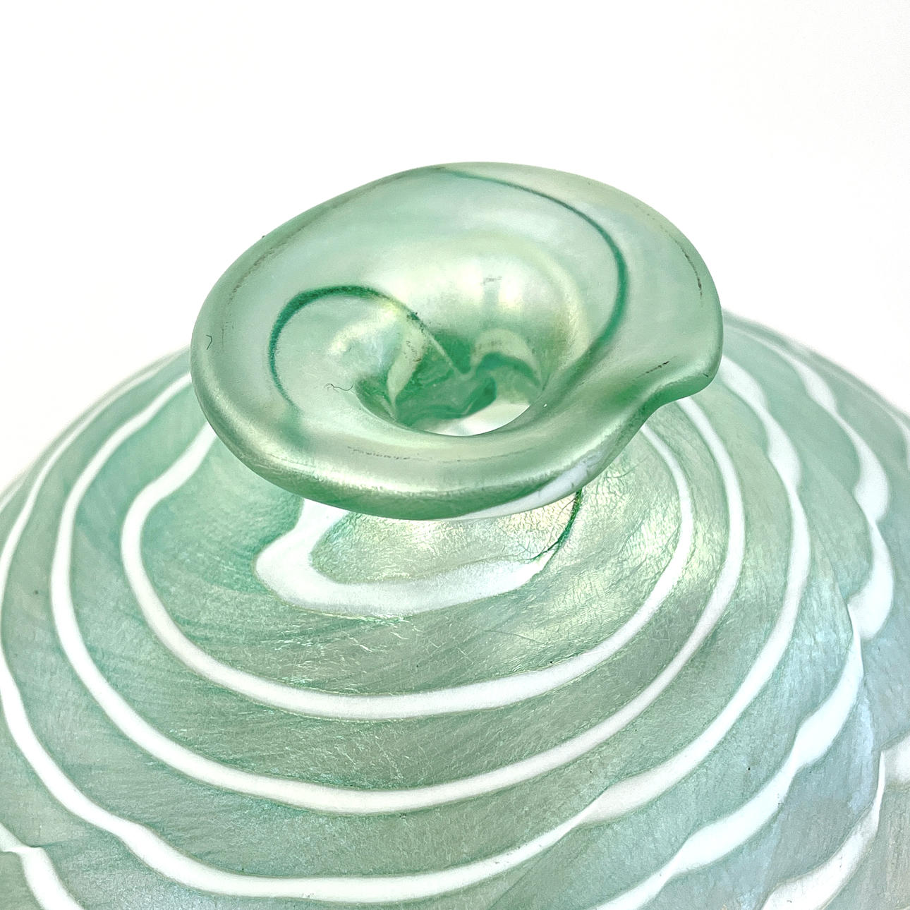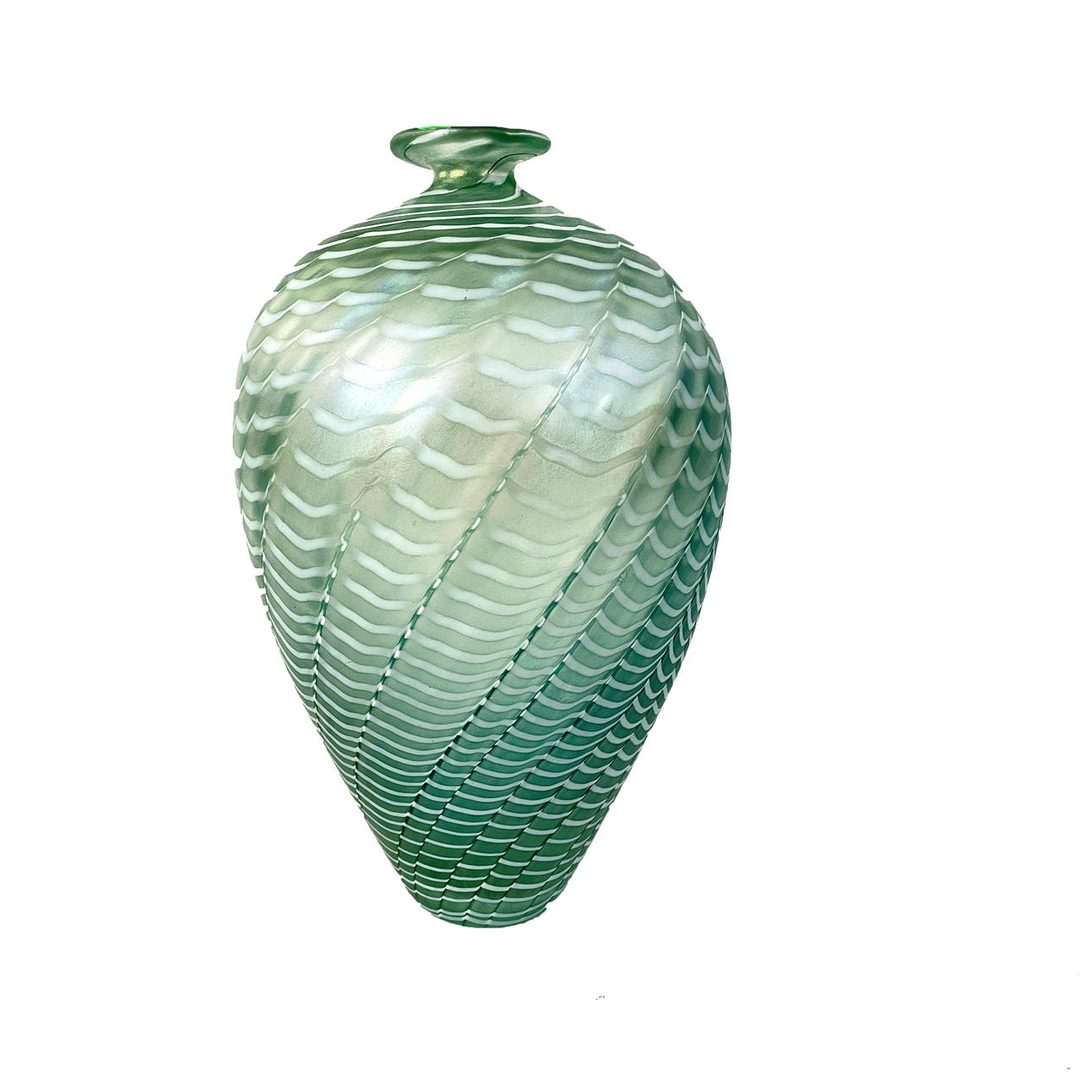 Iridescent green glass. Height approx. 25 cm. Not signed.