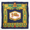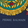 Silk, motif with horse body on white background and with blue border, marked “PIERRE BALMAIN”, approx. 90 x 90 cm.