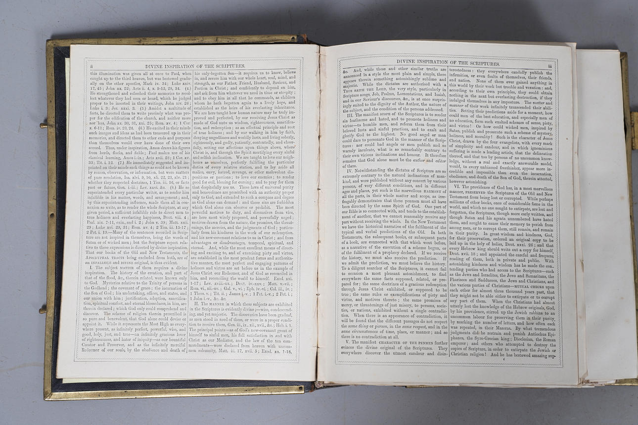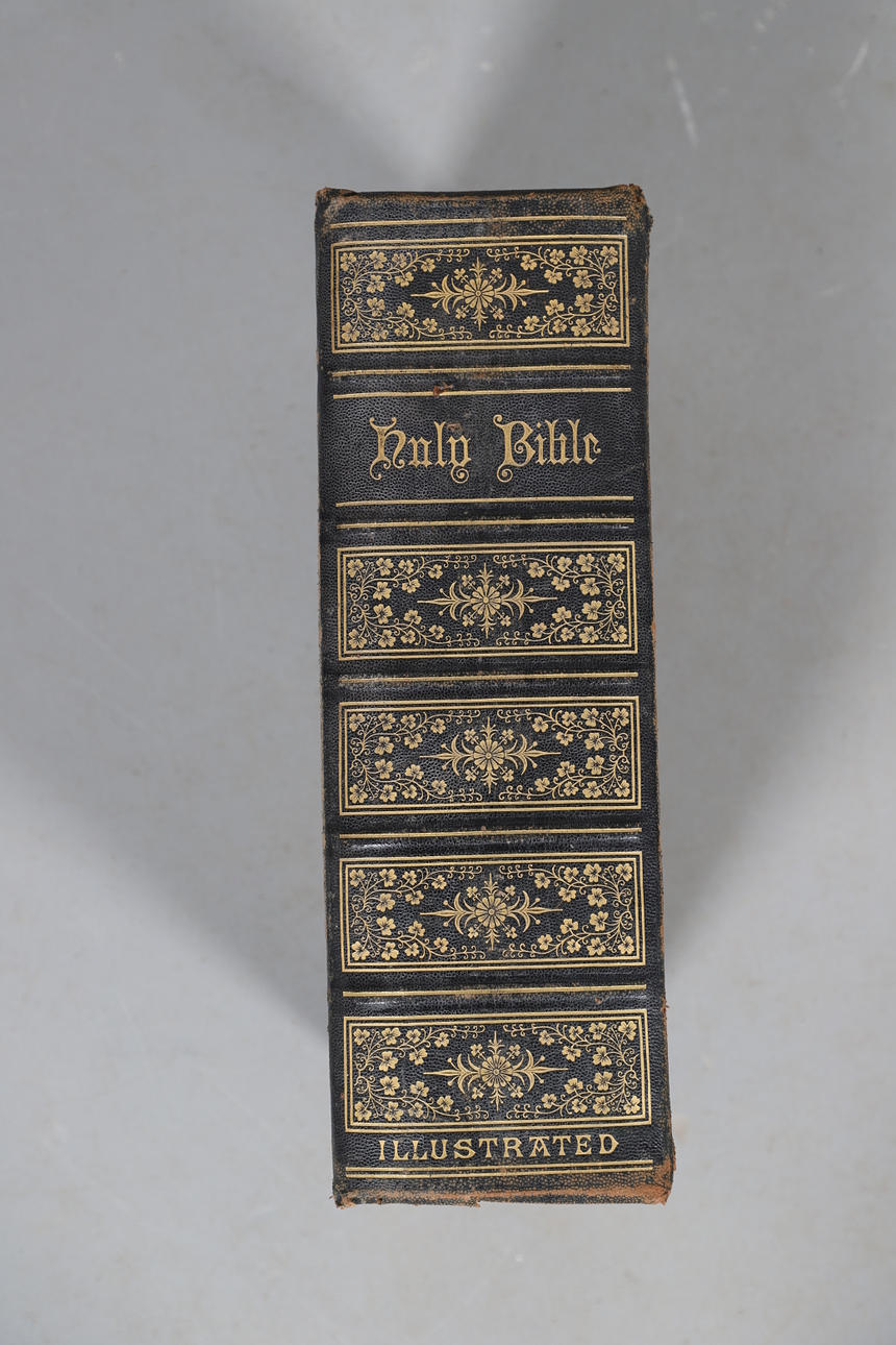 A Victorian family Bible, 'The Self-Interpreting Family Bible' by the late Rev. John Brown, Minister of the Gospel at Haddington, printed by James Semple, 32 North Albion Street, Glasgow, c. 1870s, bound in gilt tooled black leather with gilt metal mounts. (35cm x 25cm).