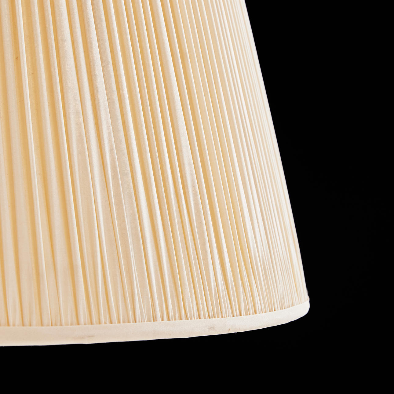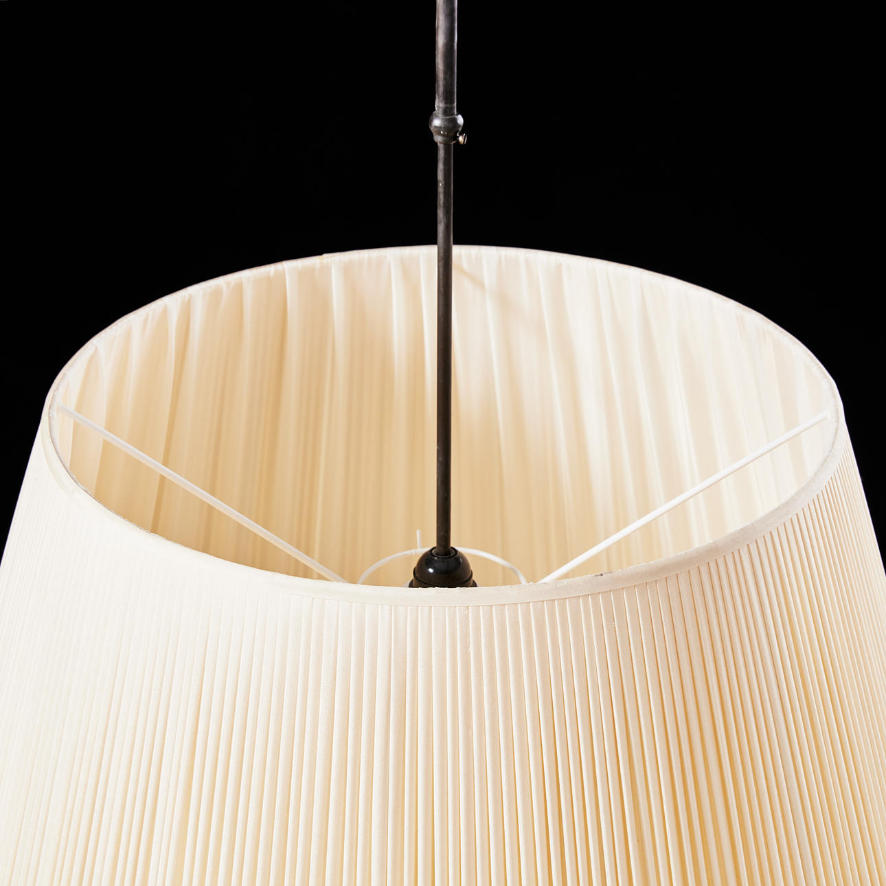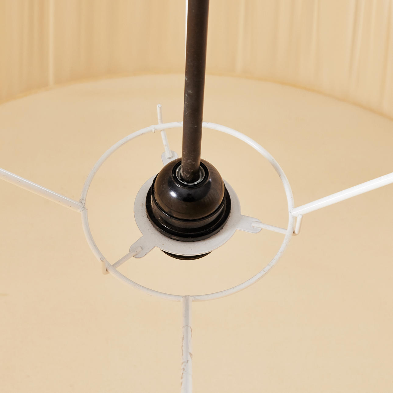 Black lamp with oversized screen in white textile, screen height approx. 50, diameter 90cm.