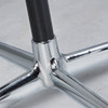 Bistro table with black steel base and a four-star diecast aluminum base with black plastic protectors, white laminate table top with black plastic edges, marked with manufacturer's name on the base, H.73cm, L.90cm, W.90cm.