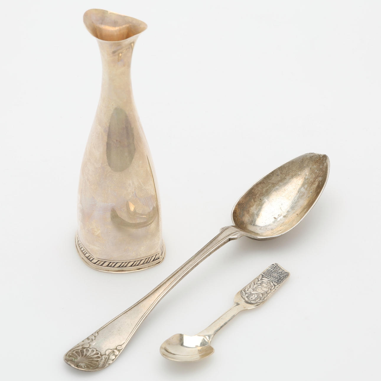 A vase, Ainar Axelsson, height 15,5 cm. Mixed spoons, length 10-22 cm.