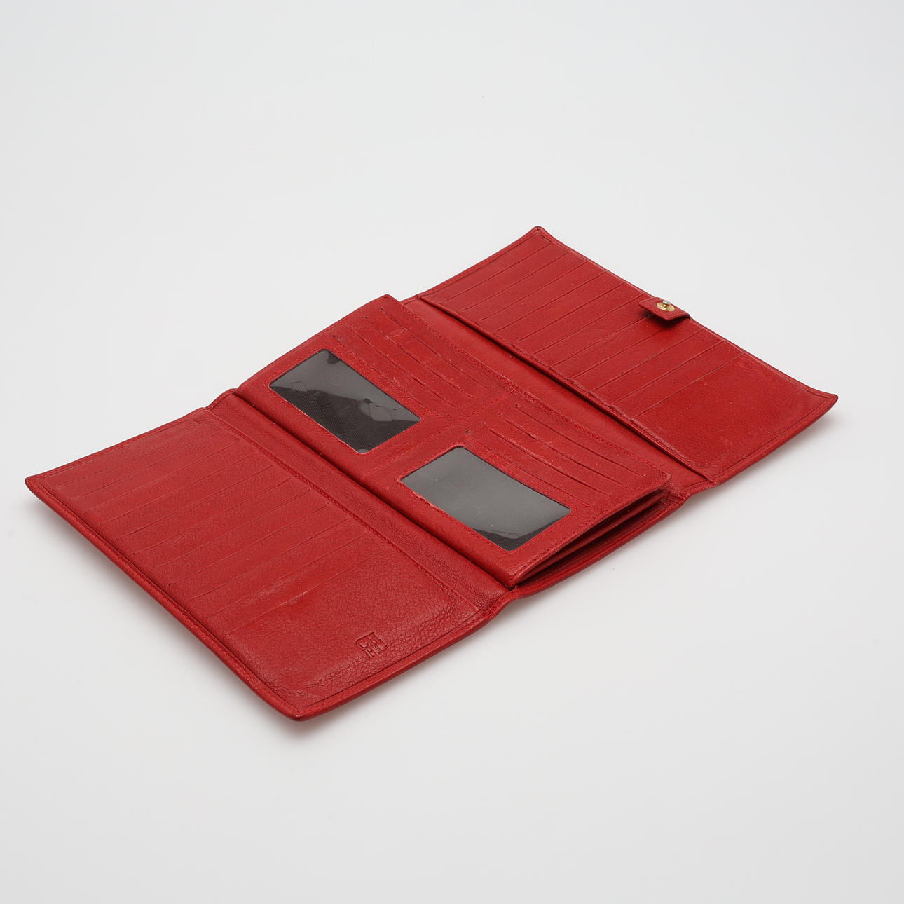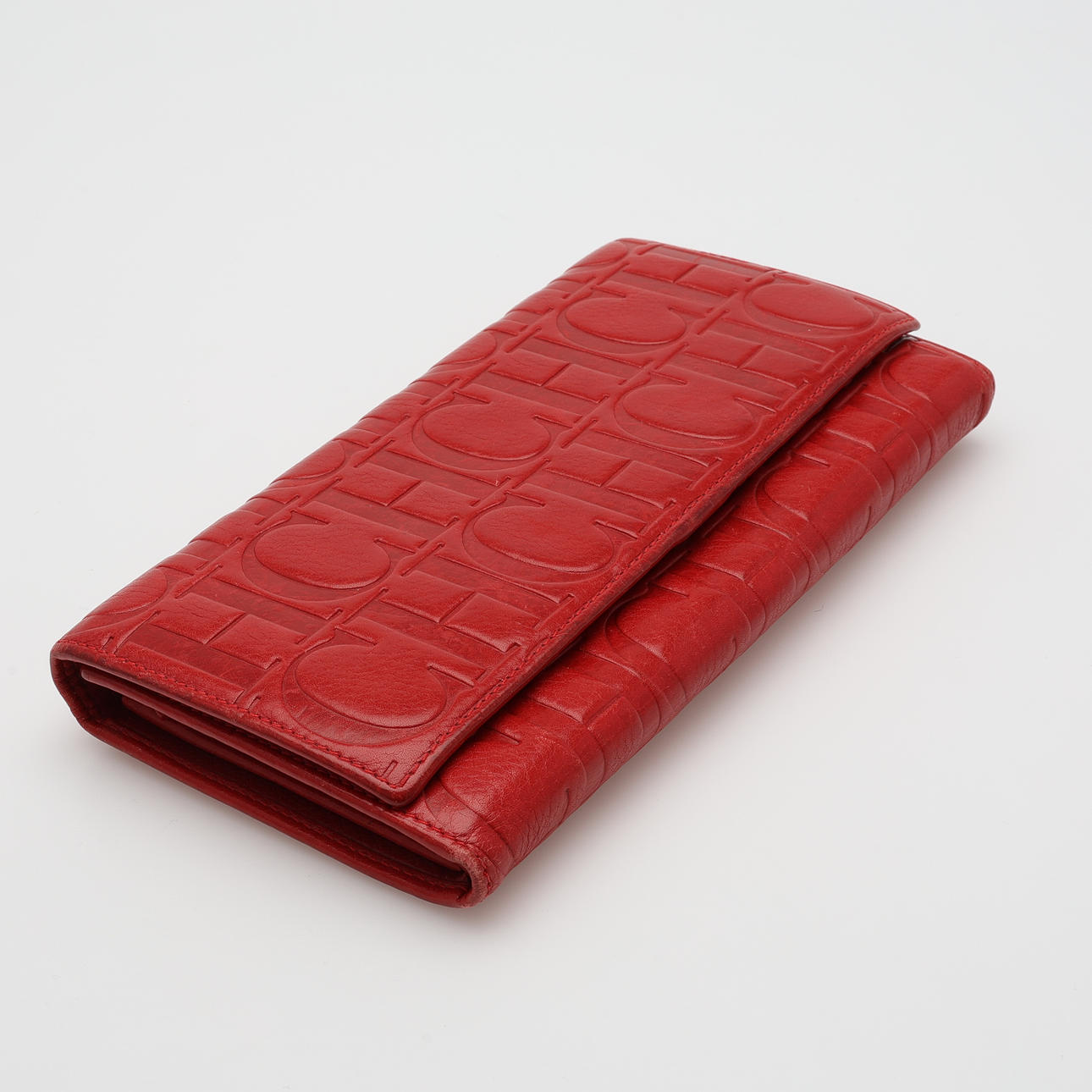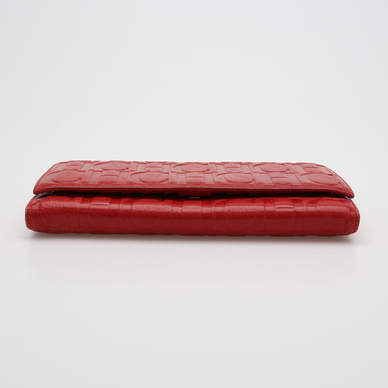 3924226. CARINA HERRERA RED MONOGRAM LEATHER OVERSIZE CONTINENTAL WALLET.