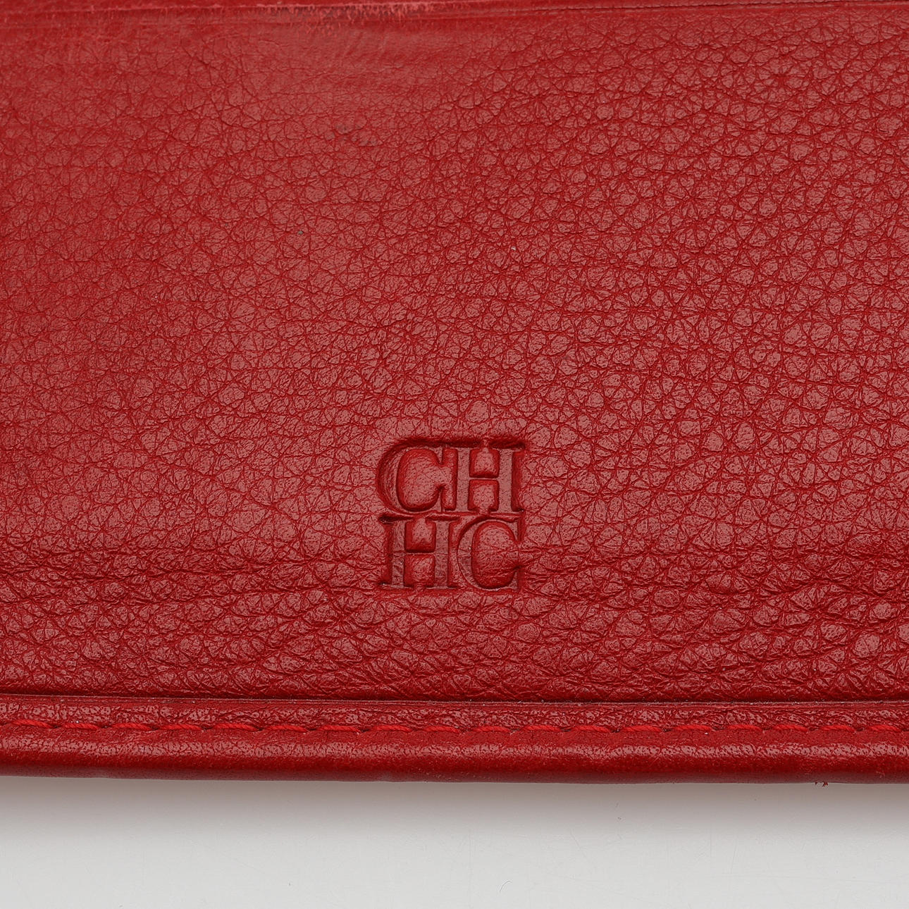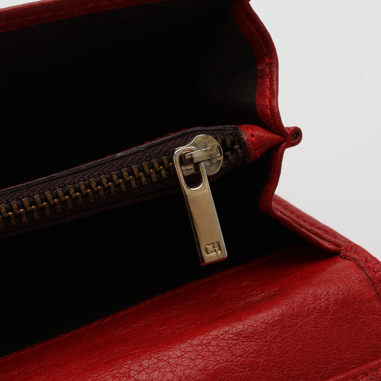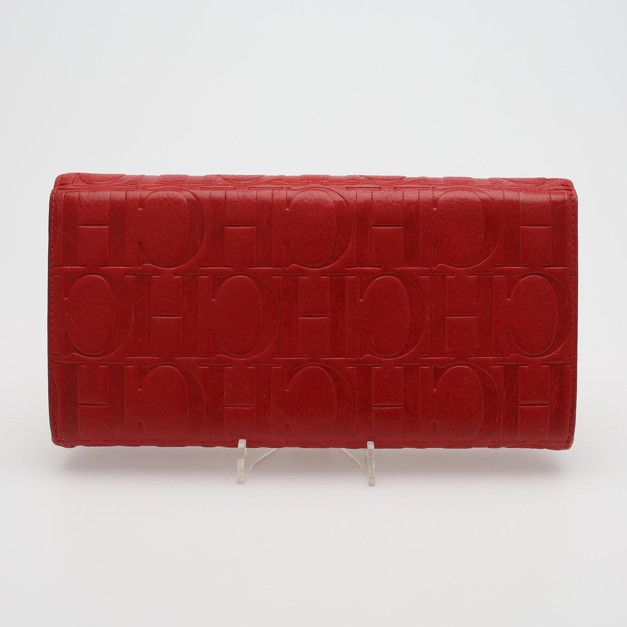 CARINA HERRERA RED MONOGRAM LEATHER OVERSIZE CONTINENTAL WALLET.