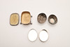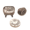 one oval and decorated with a perched bird in a tree, makers mark "PG", Birmingham 1982, one rounded rectangular with a kingfisher perched in a tree, marked "925" only and a continental/ foreign example of a seated bird, marks indiscernible; the largest 1.75" (4.5cm) long; 2.8ozt (3).