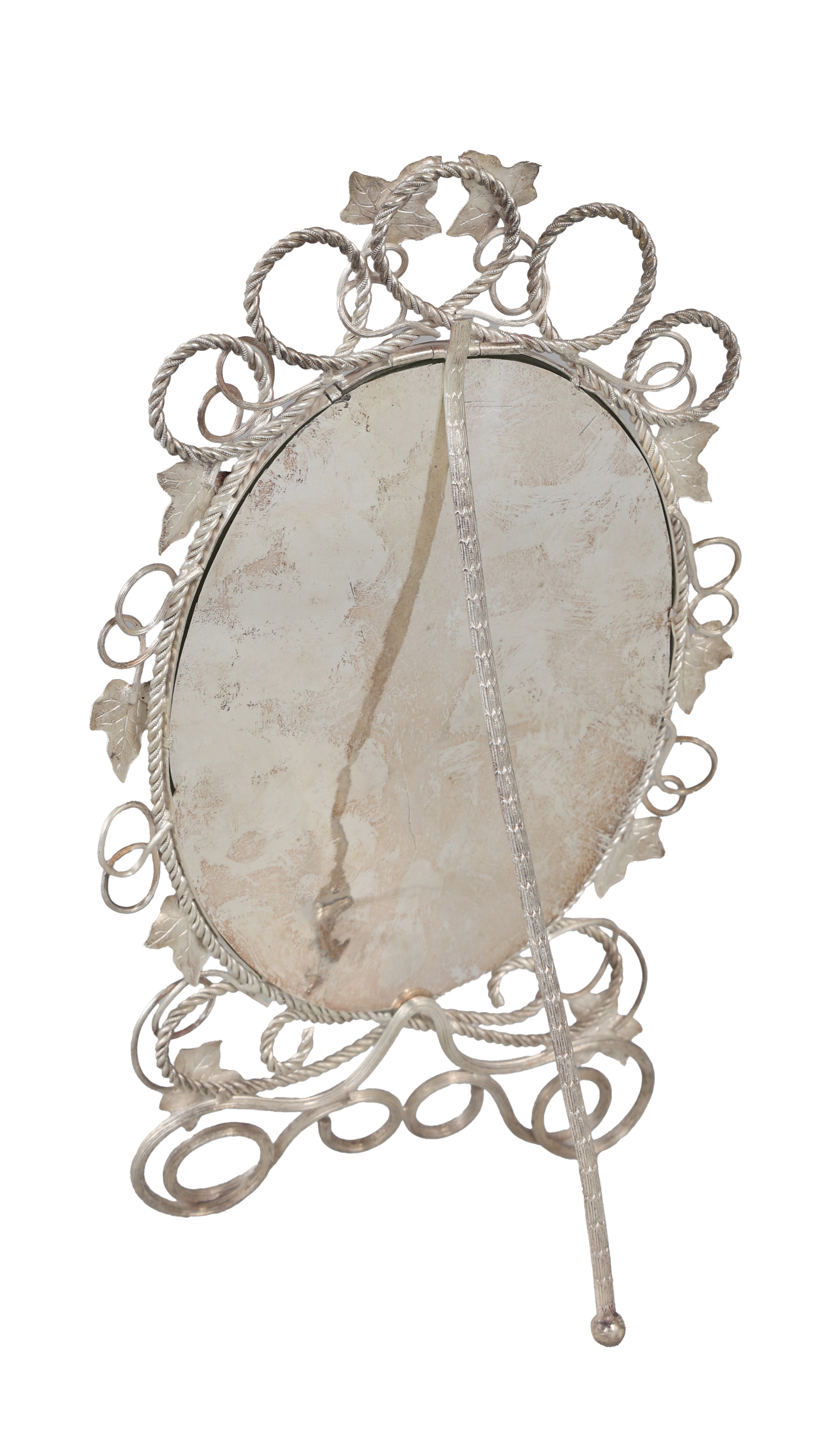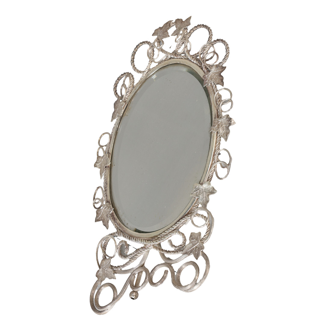 3927133. A WHITE METAL EASEL DRESSING TABLE MIRROR.