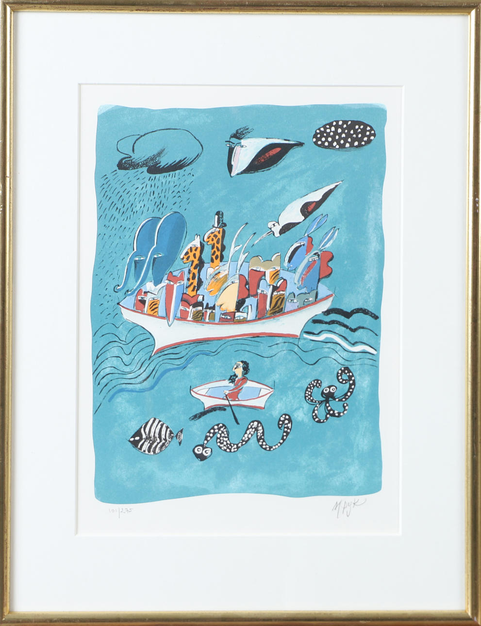 MADELEINE PYK. Composition with figures, lithograph in colours, signed M. Pyk.