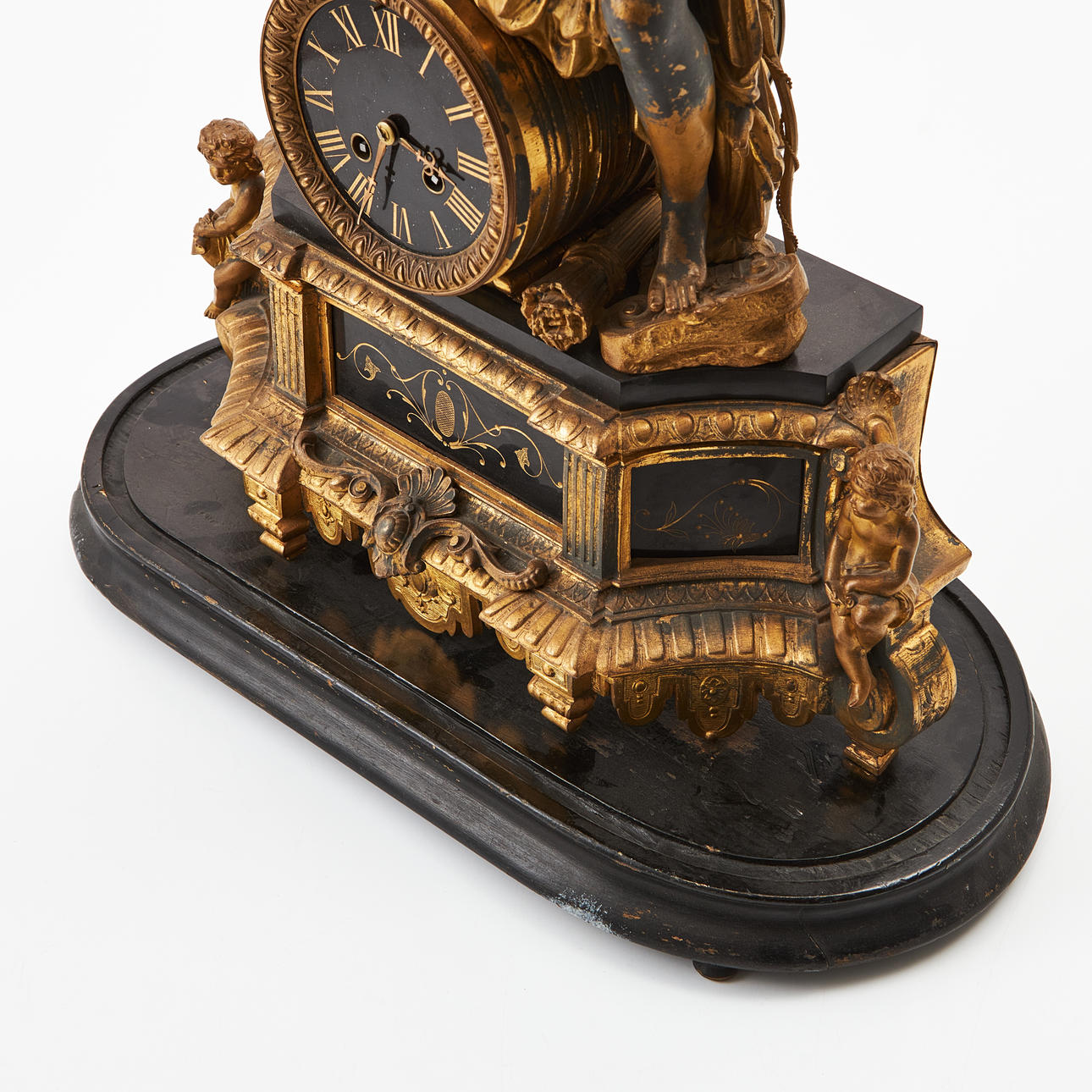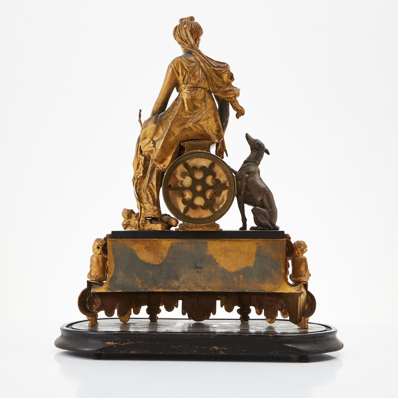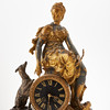 Depicting the goddess Artemis with bow and dog, black dial with Roman numerals, included, dimensions approx. 57, 44x18cm.