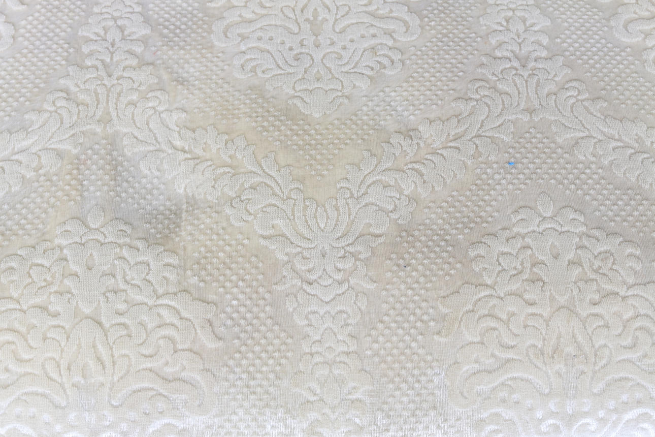 Looks reupholstered, some fading to the wood on the back but solid and overall very good condition.