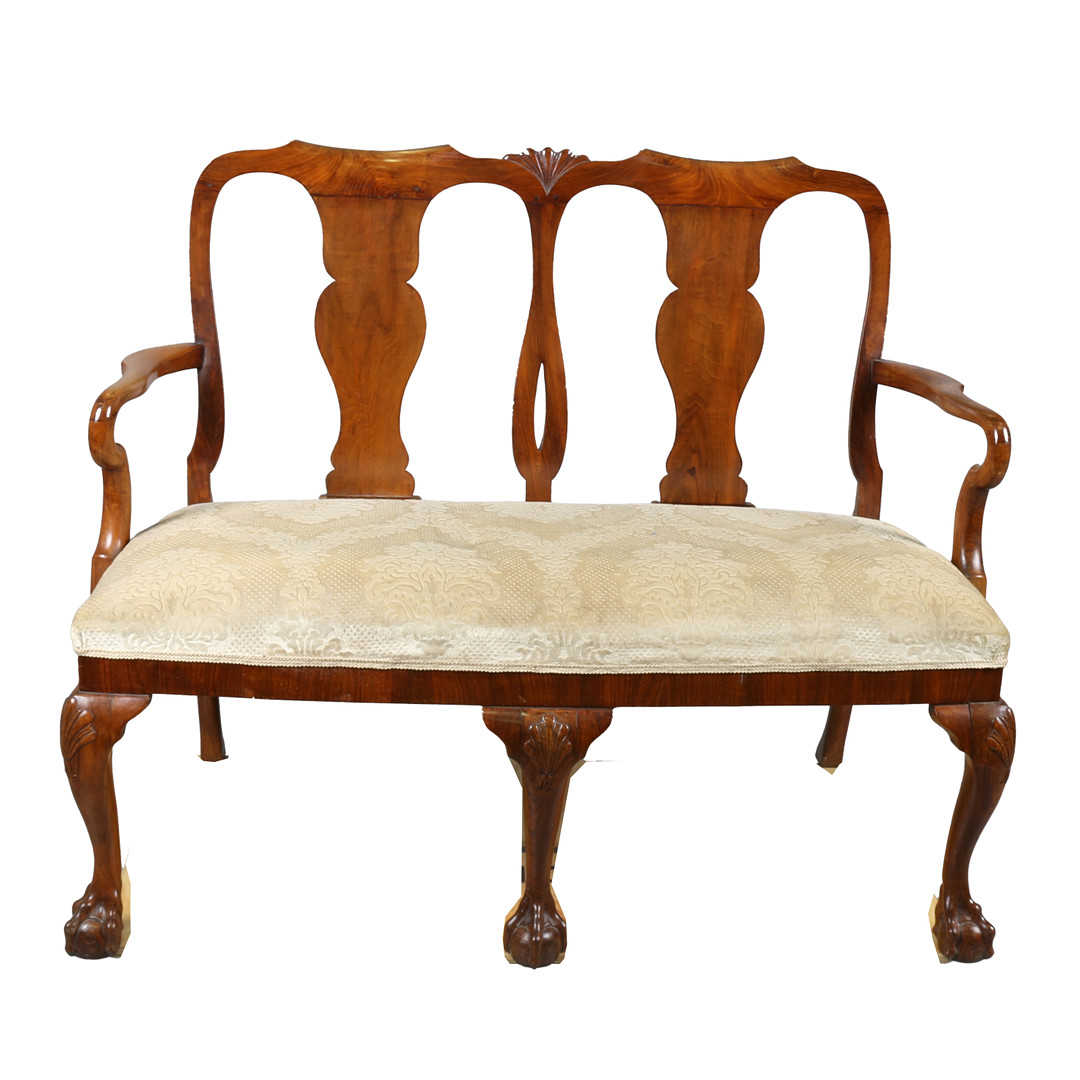 3934829. A QUEEN ANNE STYLE WALNUT DOUBLE CHAIR BACK SETTEE.