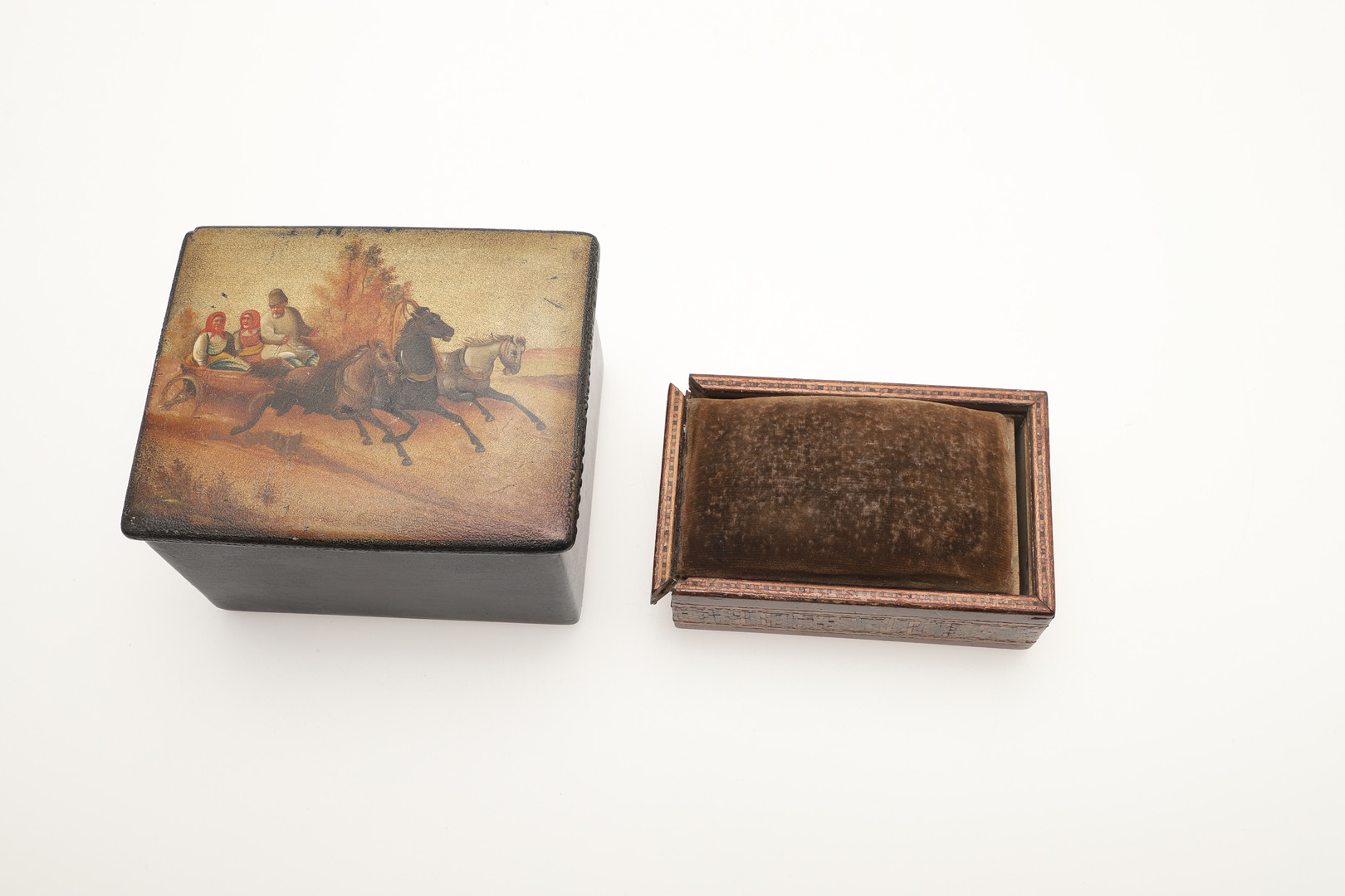 3934900. RUSSIAN LACQUERED BOX, TUNBRIDGE WARE ITEMS & COLLECTABLES.