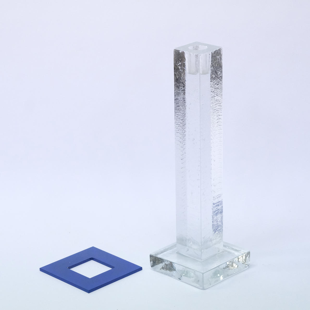 BERTIL VALLIEN. CANDLESTICK, “TOWER”, GLASS AND METAL, SIGNED.