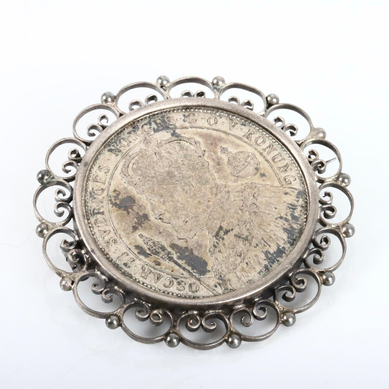 3947599. BROOCH, with coins, 2 kr 1897 silver.