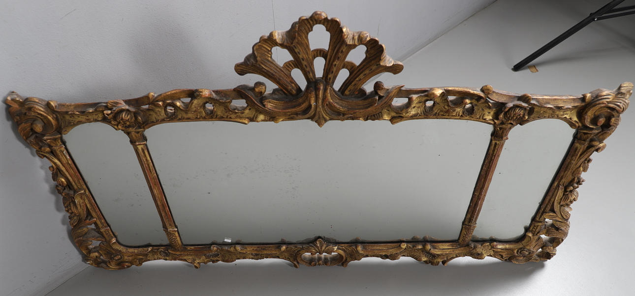 3948862. LARGE ANTIQUE GILTWOOD OVERMANTLE MIRROR.