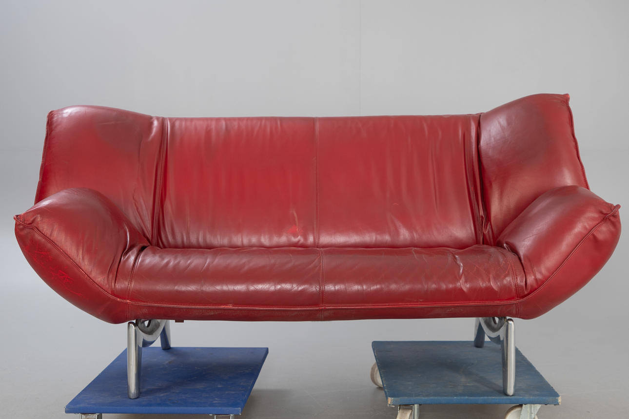 Dutch design, 1990s. Model: Tango Polished aluminum frame Dark red leather cover.