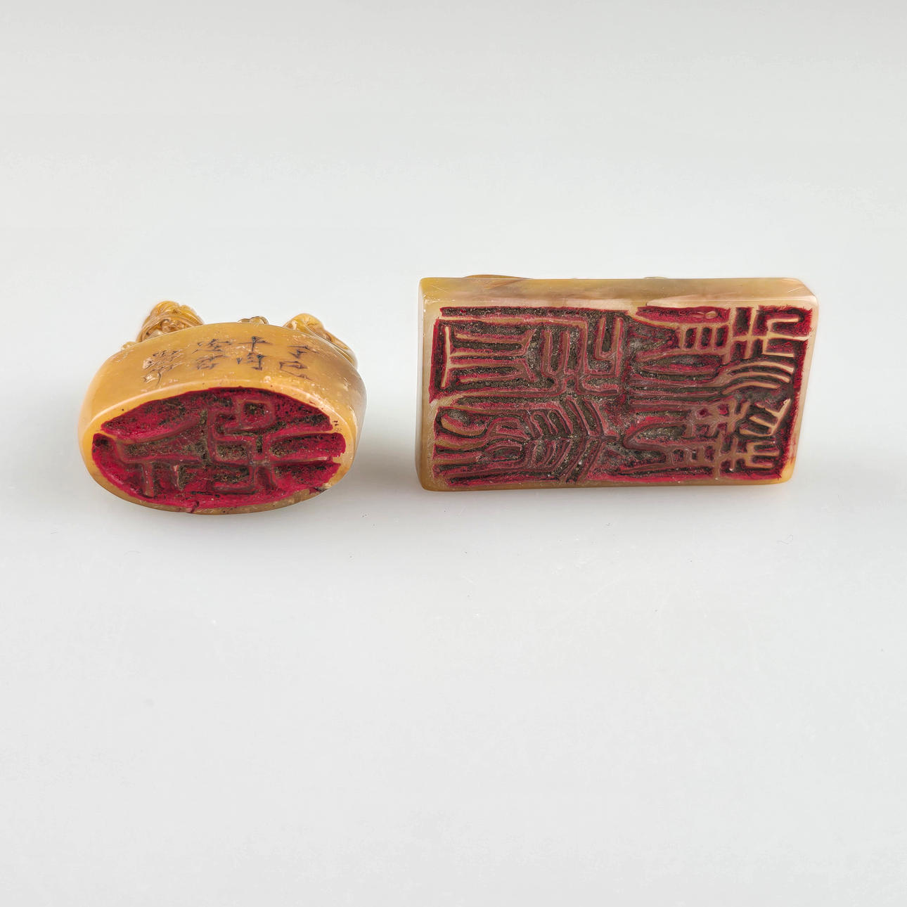 Four small STONE SEALS - China, caramel-colored stone types.