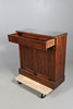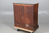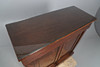 The rectangular top over a single oak lined frieze drawer with two-door cupboard under. On plinth base.