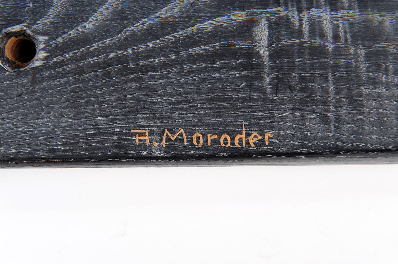 Albin Moroder (December 6, 1922 in Schlitters - November 17, 2007 in Mayrhofen); Blackened wood, dating from the 1960s, signed on the reverse and with a hanger. dimensions approx. 64x10cm.