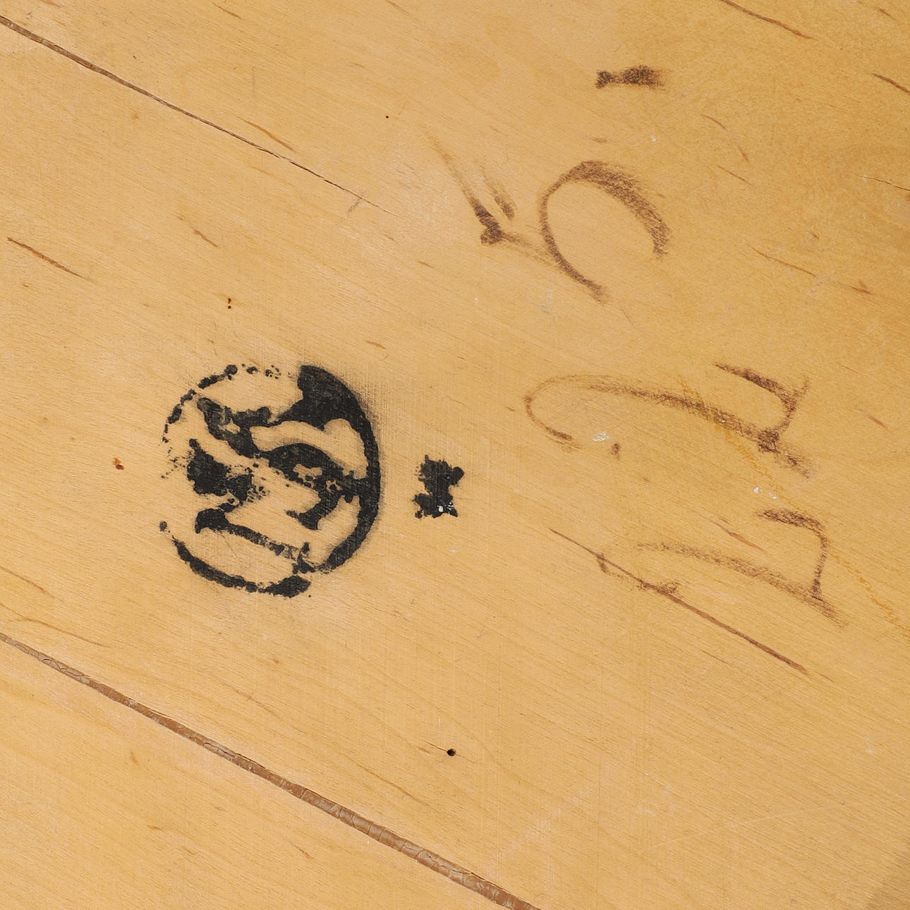 Root veneer, irregular shape. The Swedish Furniture Industry Association's stamp below. Height 55, 70 x 70 cm.