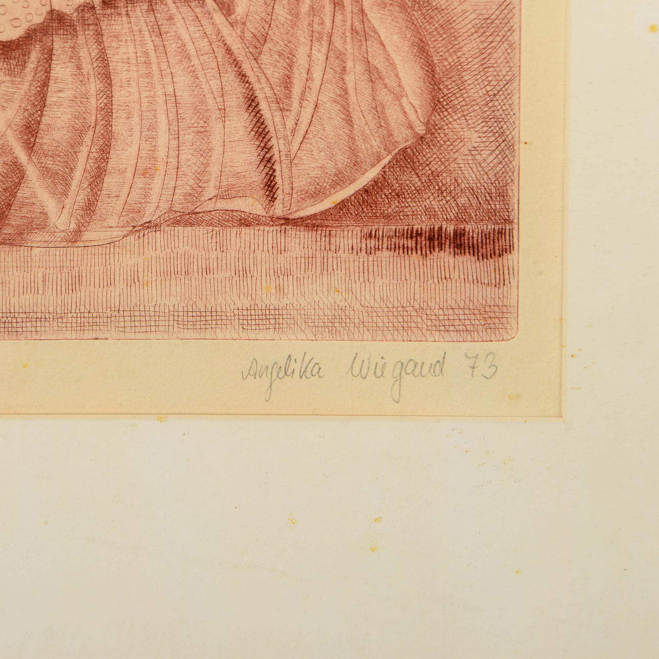 3966636. OIDENTIFIERAD KONSTNÄR. Two women, etching, signed, EA, Angelika.