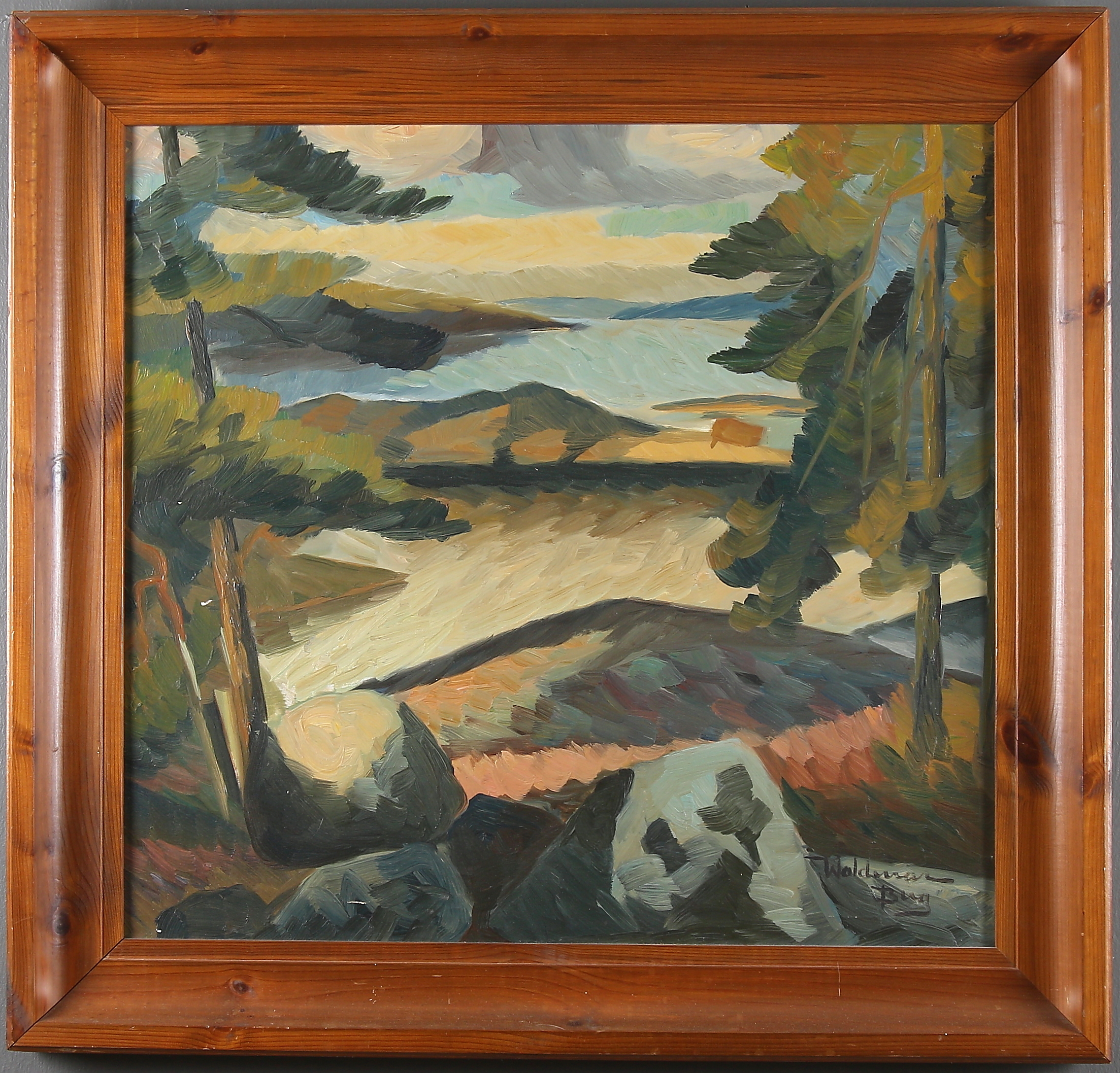 396704. WALDEMAR BERG. Forest view, oil on canvas, signed.