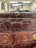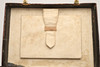 General wear as you would expect, some wear around the edges with the odd hole, wear and repair to the handle, something missing just under the handle, material inside is stained, some holes to the material on the back.