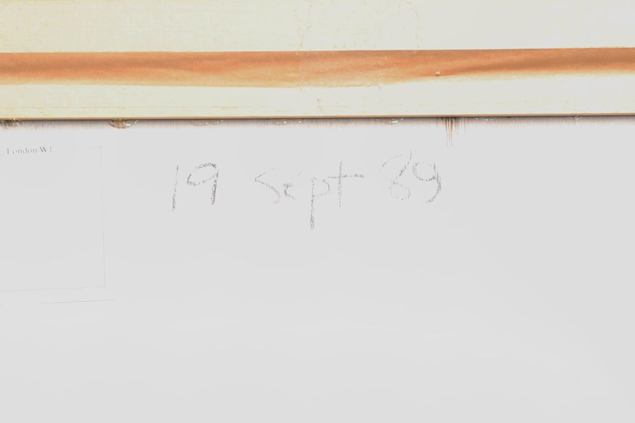 Dated `19 Sept 89` verso, oil on ply panel 122.5 x 122.5cm.