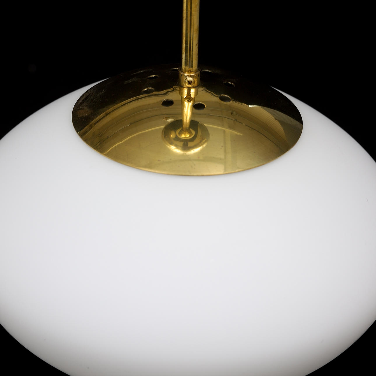Cups in white frosted glass, brass bracket. Height 53, diam 26 cm.