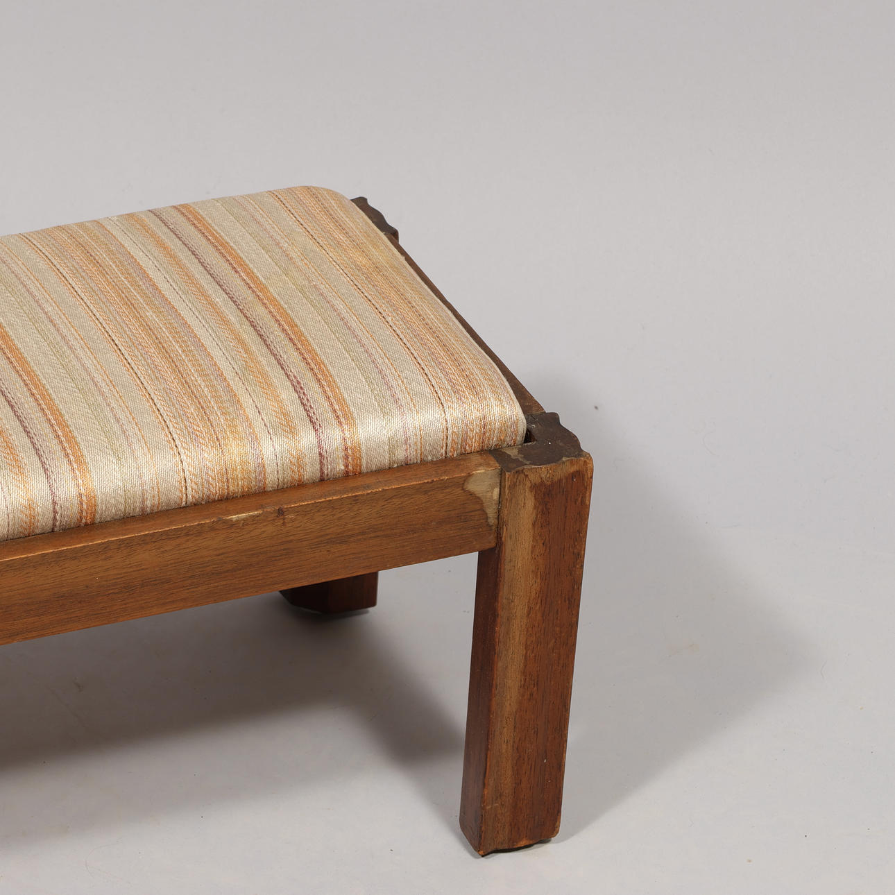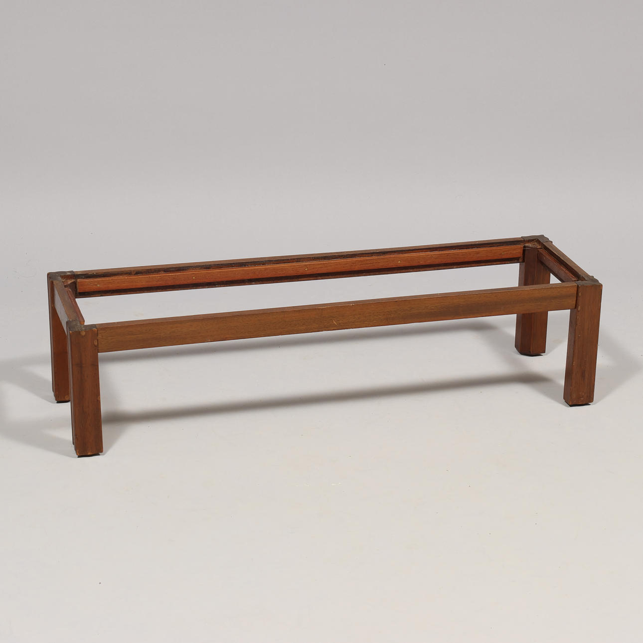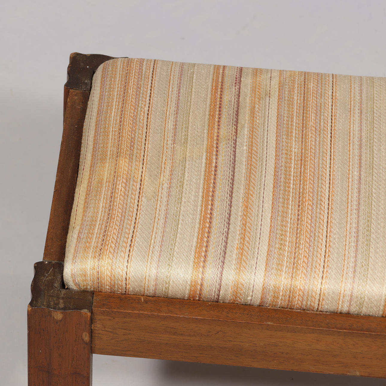 Make bench with frame of mahogany. Pillow covered with fabric.