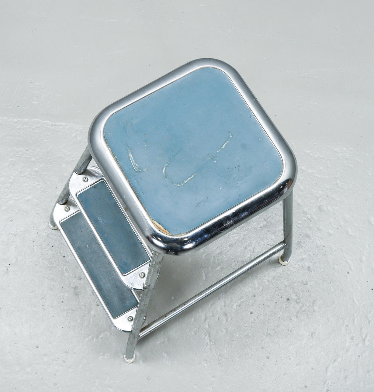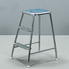 Chromed metal, upholstered seat and steps.